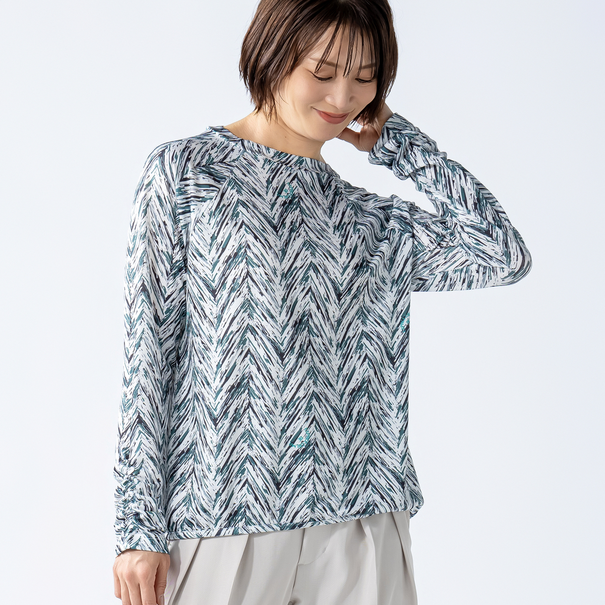 No. 753110 calma サファリヘリンボーン柄 サラサラシリーズ プルオーバー