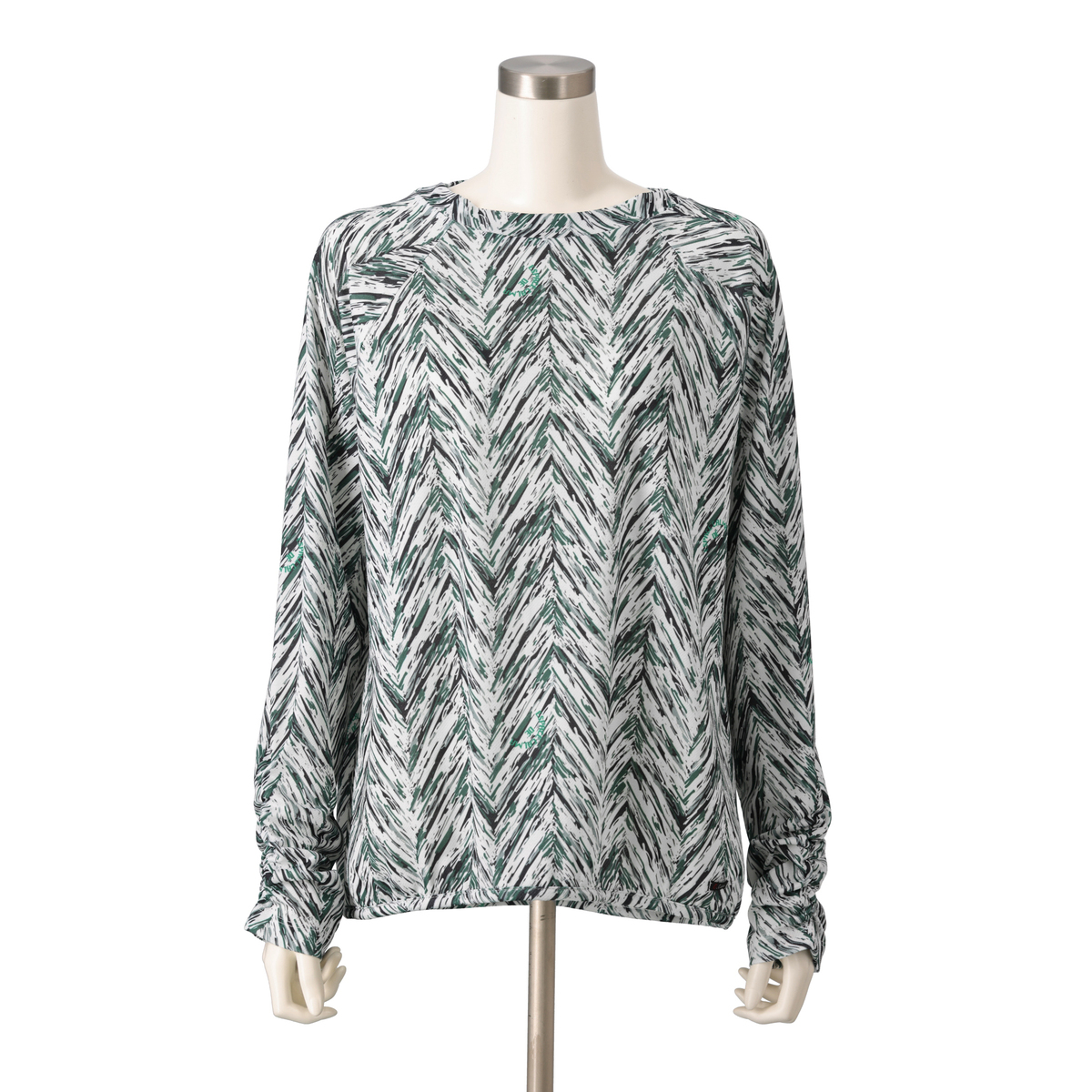 サファリを穏やかにイメージした柄と、オーソドックスなヘリンボーンをミックスした総柄が魅力のプルオーバー。幾何柄のように見えるプリントデザインで、コーデに取り入れやすい仕上がりです