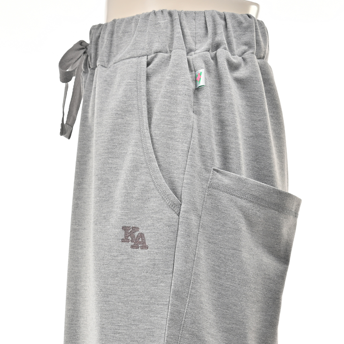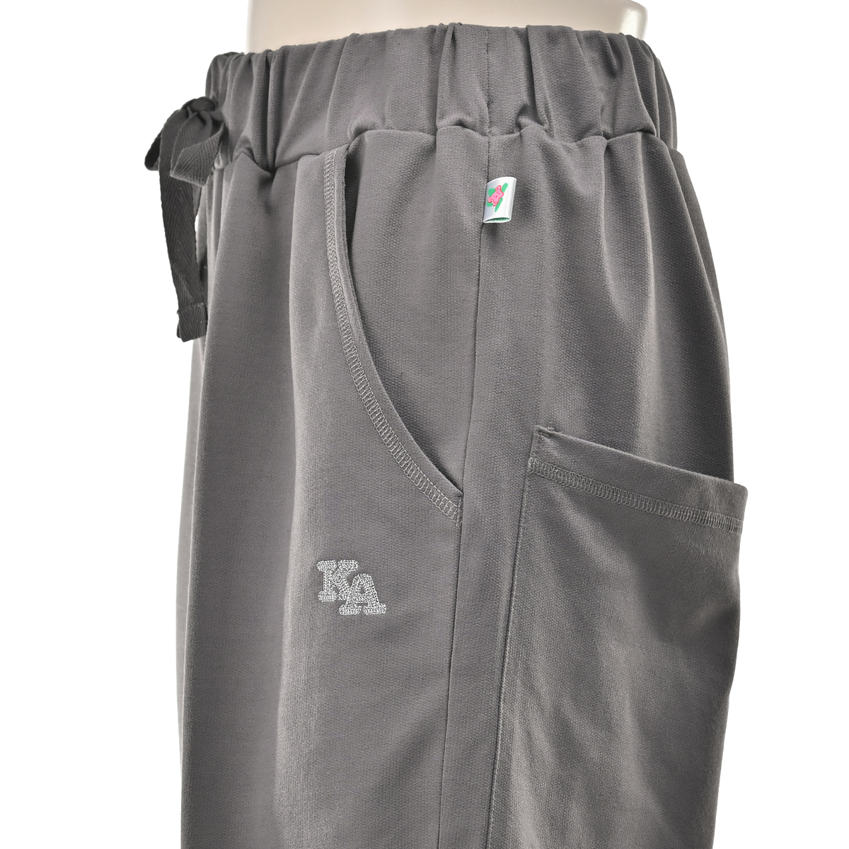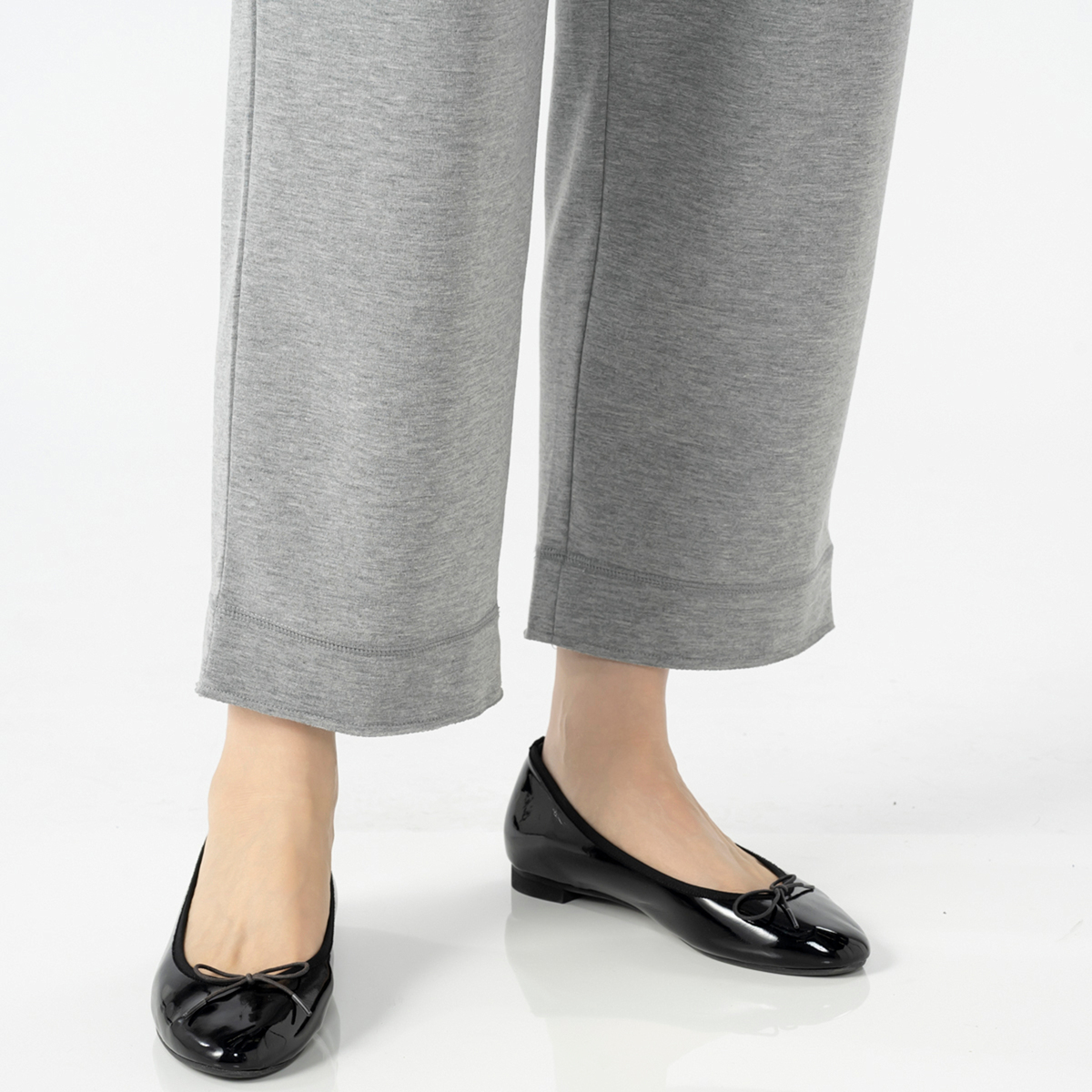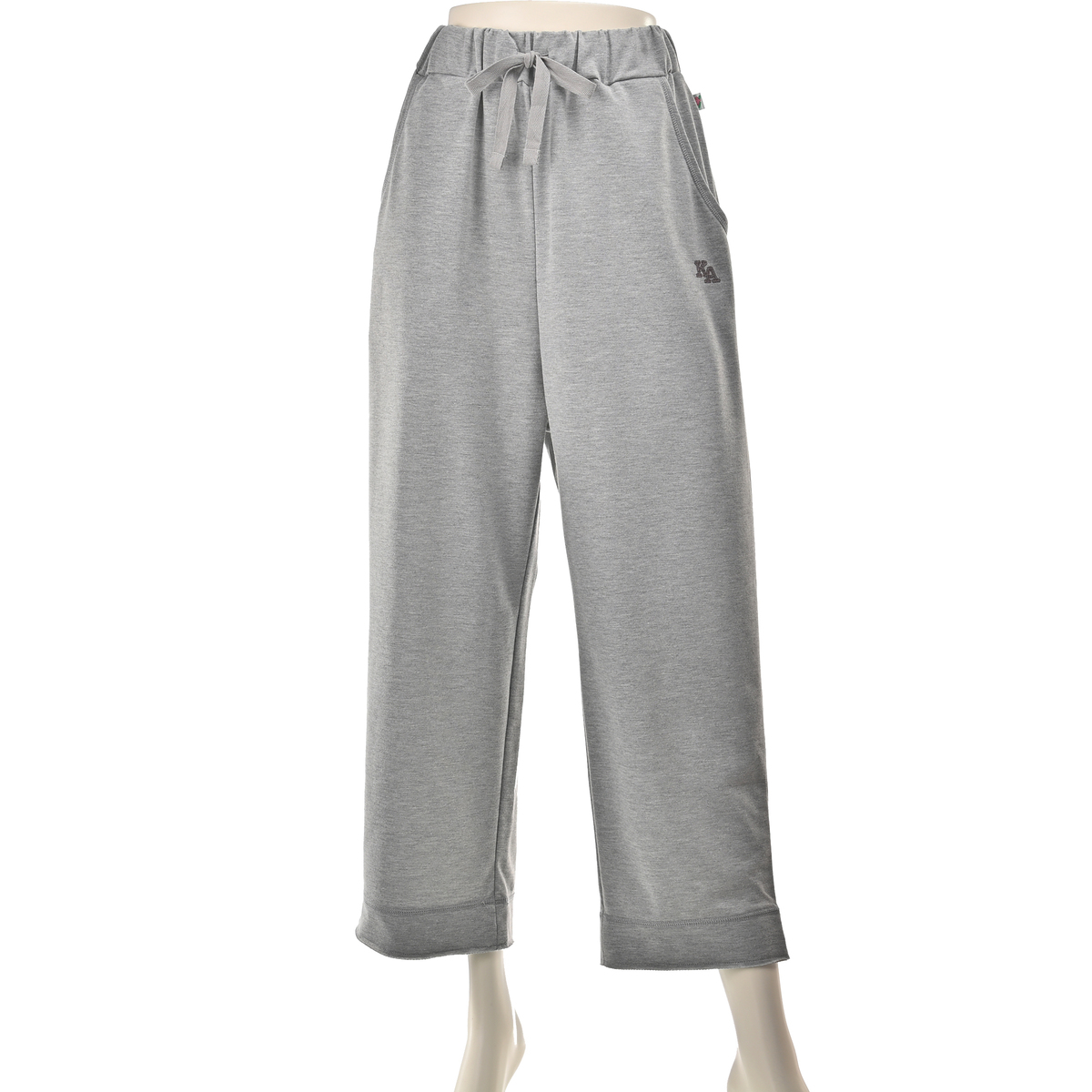 インレイ素材を使用したワイドパンツ。ベーシックなデザインで、ウエストは紐で調整可能です。軽く、肌触りにこだわった一本です