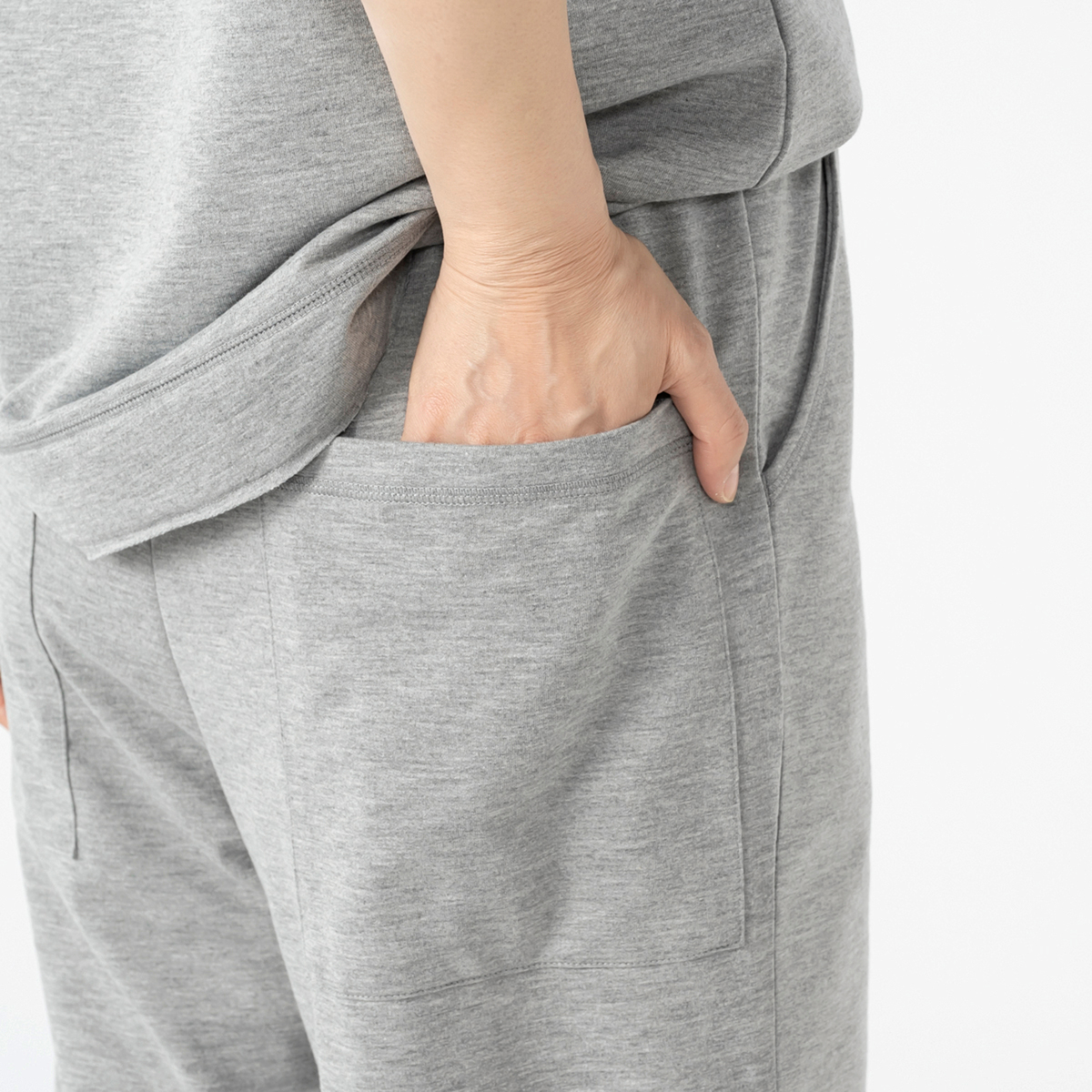 [商品寸法(ヌード)cm] サイズ ウエスト ヒップ 股下 M : 68(70〜76) 104(88〜94) 56 L : 73(75〜81) 109(93〜99) 56 LL : 79(80〜87) 115(98〜105) 56 3L : 85(84〜91) 121(104〜111) 56 サイズ 前股ぐり わたり幅 M : 38 34 L : 39 35.5 LL : 40 37 3L : 41 38.5 [ウエストゴム] 全体に有 [素材] 杢グレー: ポリエステル 89%、綿 11% モスピンク、ダークレーズン: ポリエステル 80%、綿 20% [お手入れ] 洗濯機洗い可 [注意事項] ※商品寸法の誤差は多少発生します。ご了承下さい ※洗濯後はすぐに脱水し、形を整えて干して下さい。長時間、水につけたままにしないで下さい ※素材の特性上、着用や洗濯・クリーニング時の摩擦により毛羽立ち、毛玉が発生します。その際はお早めに毛玉取り器等で手入れをして下さい ※デザイン上、裁ち目処理をしていない部分があり、着用や洗濯・クリーニングにより多少ほつれが生じることがありますのでご了承下さい ※肌が敏感な方は刺激を感じることがあります。その場合は素肌への着用はお避け下さい 【中国製】