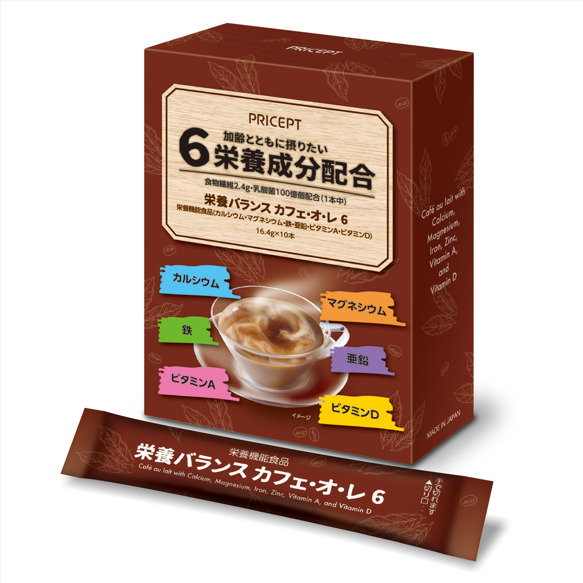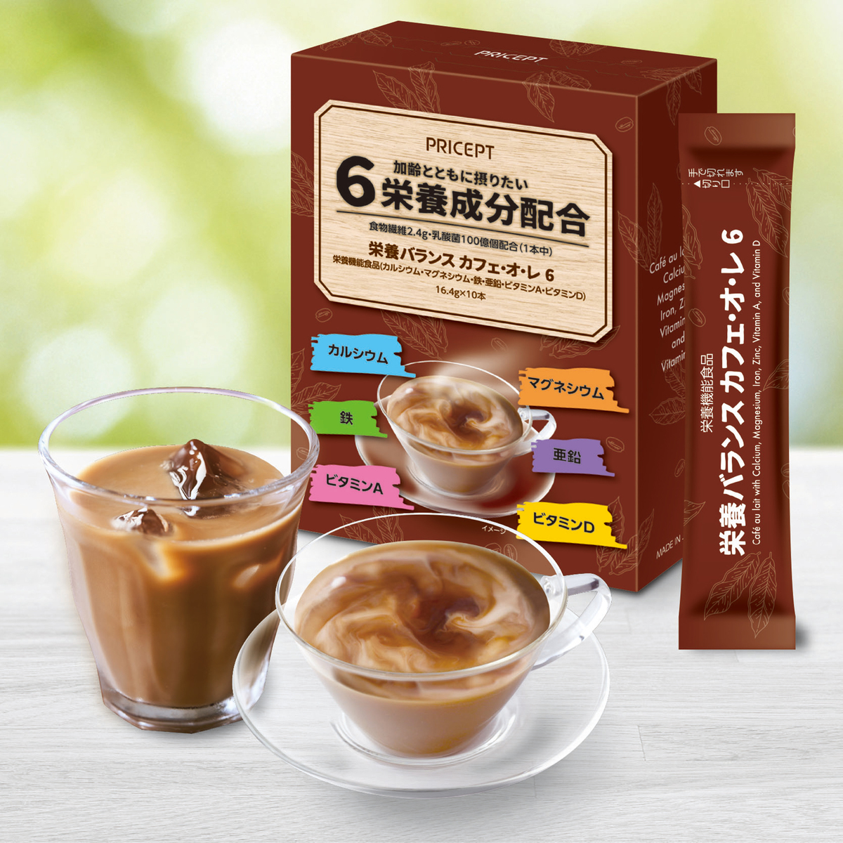 毎日の食生活で摂りたい6種の栄養成分(カルシウム・マグネシウム・鉄・亜鉛・ビタミンA・ビタミンD)を配合したカフェ・オ・レ。食生活の中で栄養バランスを気にされる方におすすめです
