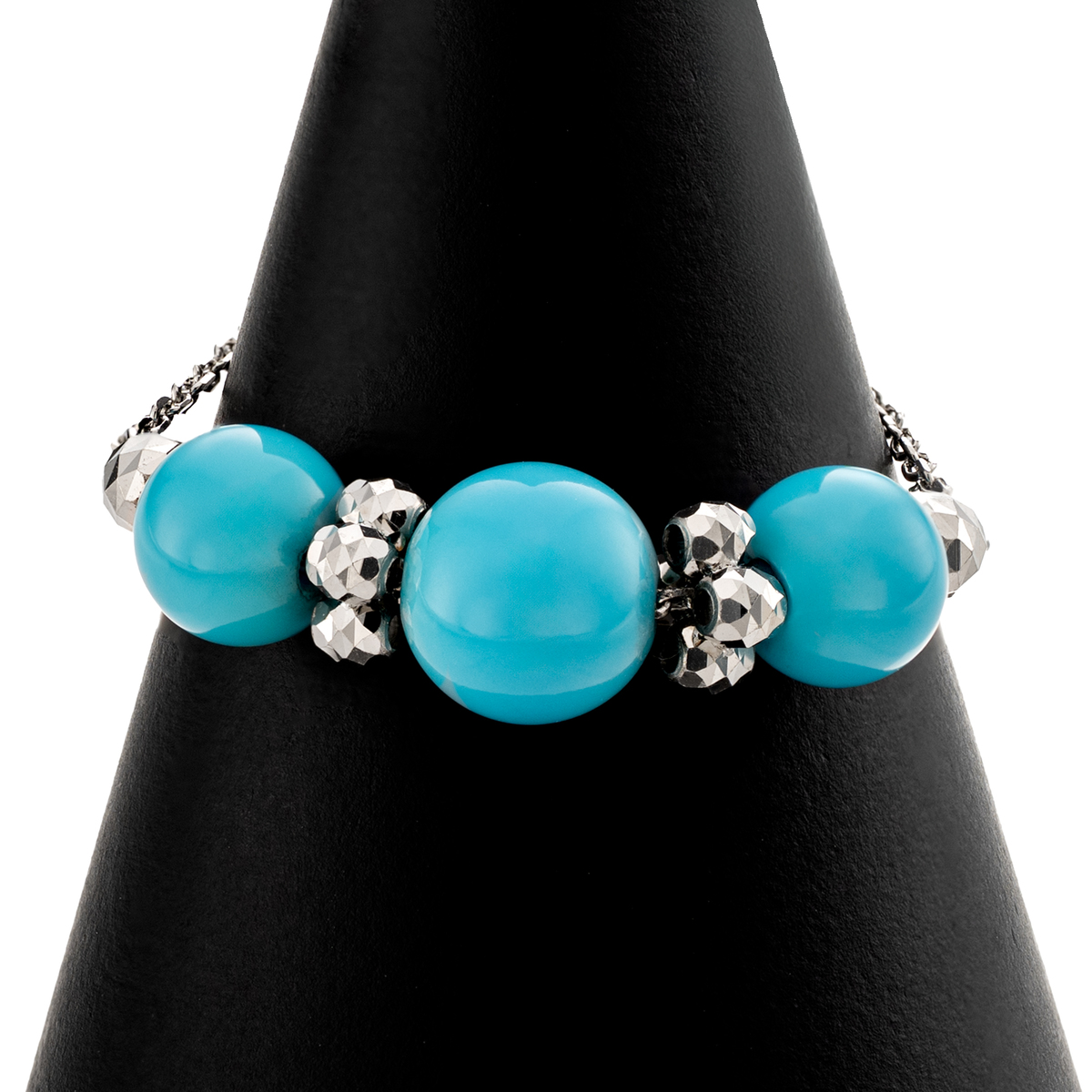 スリーピングビューティートルコ石をあしらったチェーンリング。鮮やかなブルーが指元で美しく映えます