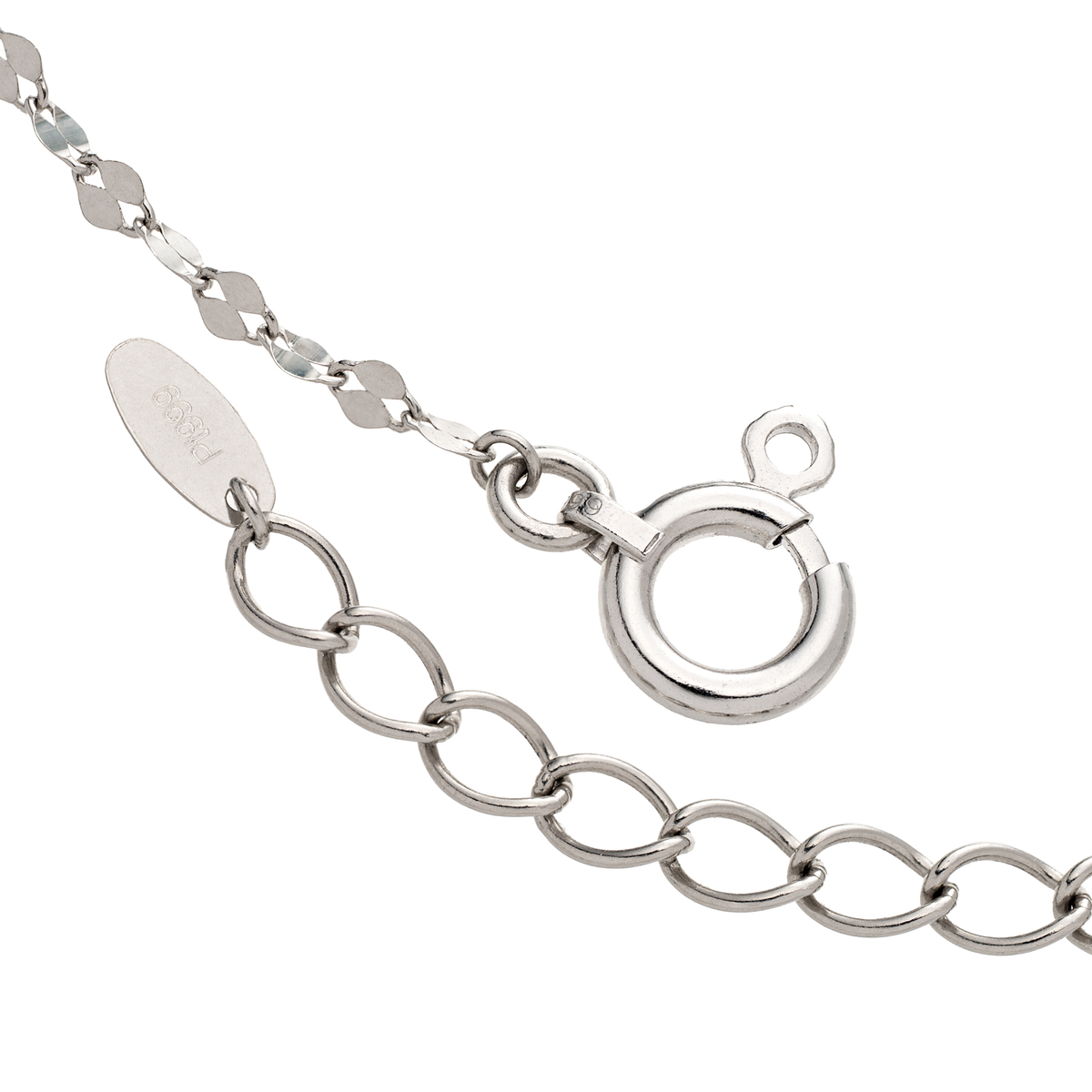 2種類のチェーンを組合せることでさりげなく華やかさを演出。地金には上品な輝きを放つ純プラチナを使用しました