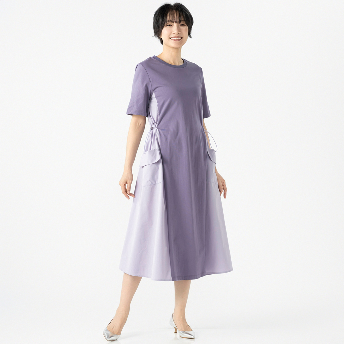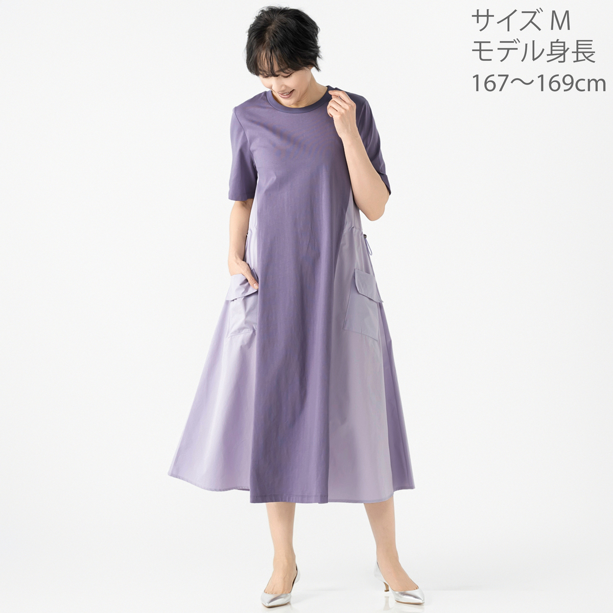 No. 753141 エニワイズ ポケットアクセントの異素材コンビAラインワンピース