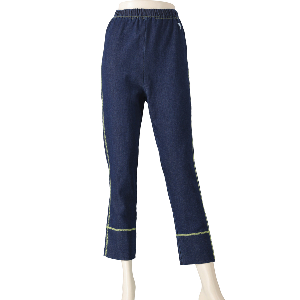 カットソーデニム素材を使用したパンツ。配色のステッチがアクセントになっています。様々なコーデに合わせやすいブランド定番のアイテムです
