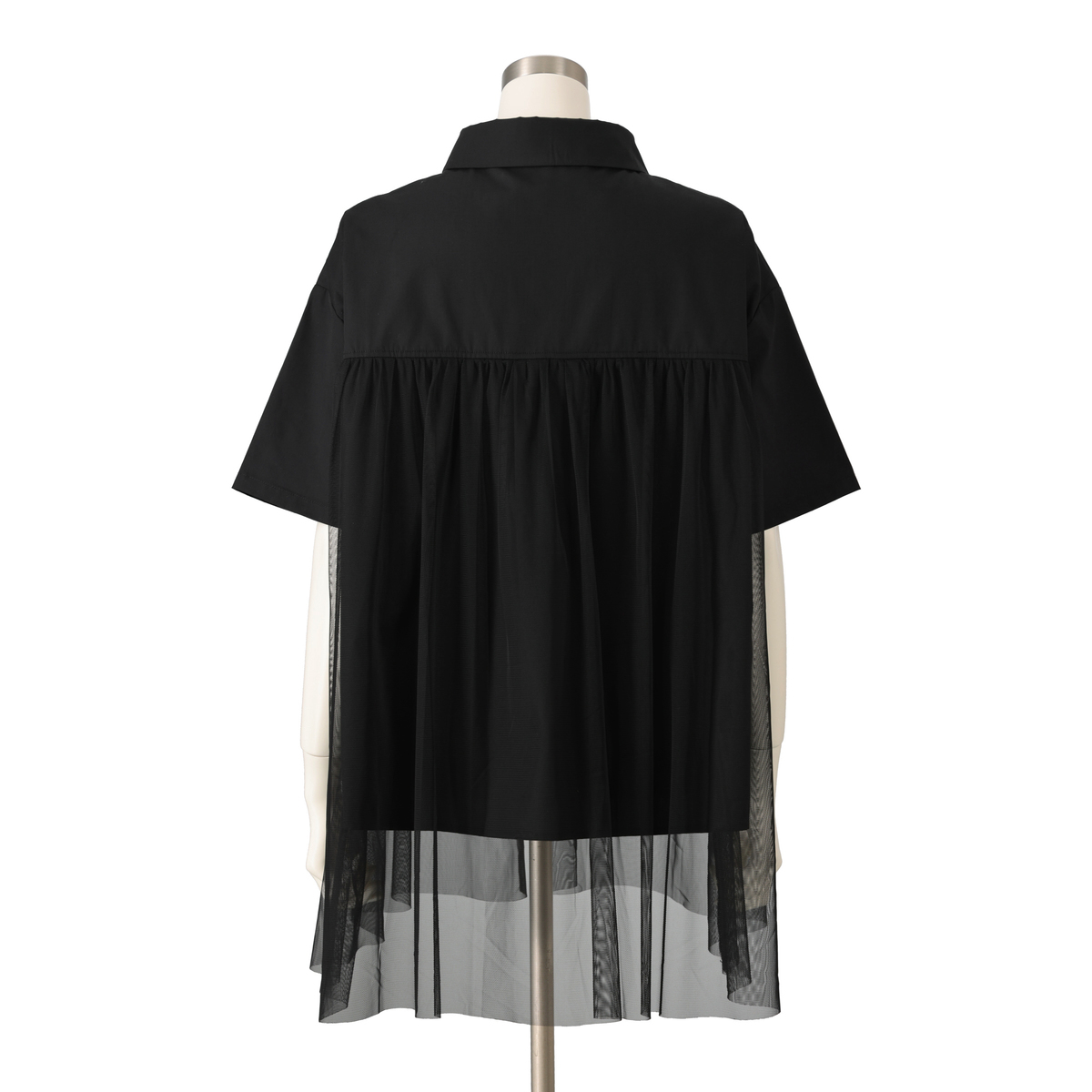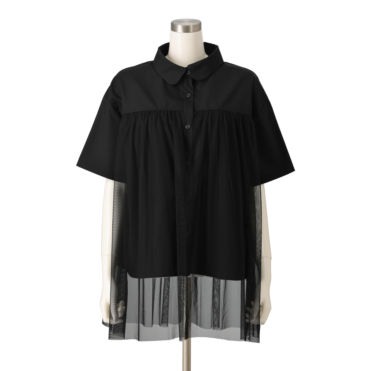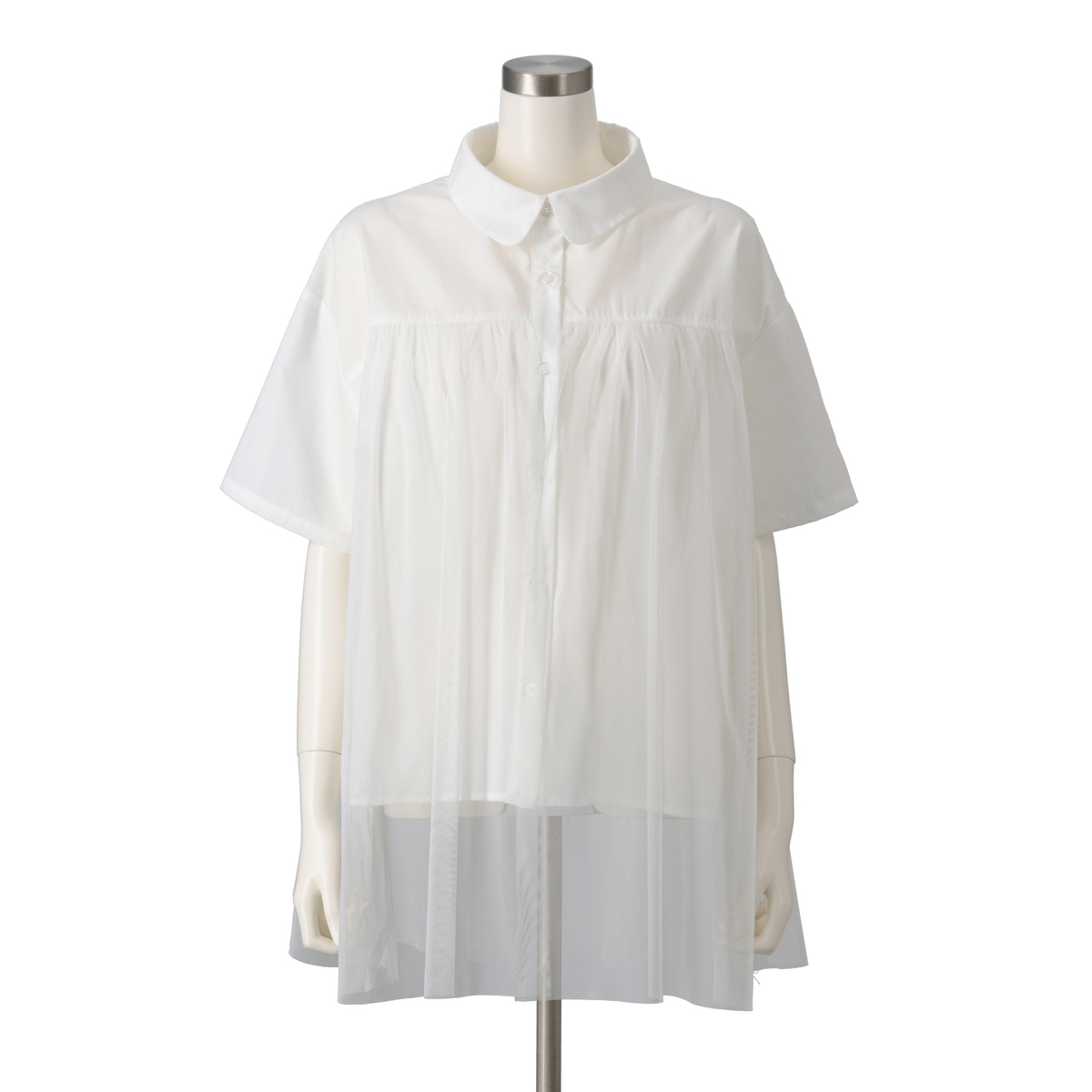 透け感が美しいチュール素材を重ねたブラウスです。軽やかなレイヤードが上品な印象を与え、コーディネートに立体感と遊び心をプラスします