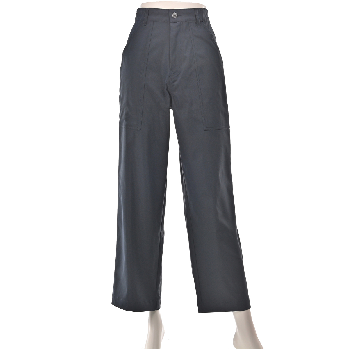 腰まわりから太ももにかけてはゆとりを持たせ、裾に向かってまっすぐ落ちるラインが脚を長く見せます。ベイカーポケットや、ヒップポケットの刺繍がさりげないアクセントになり、トップスインもきれいに決まるベルトループ付きです