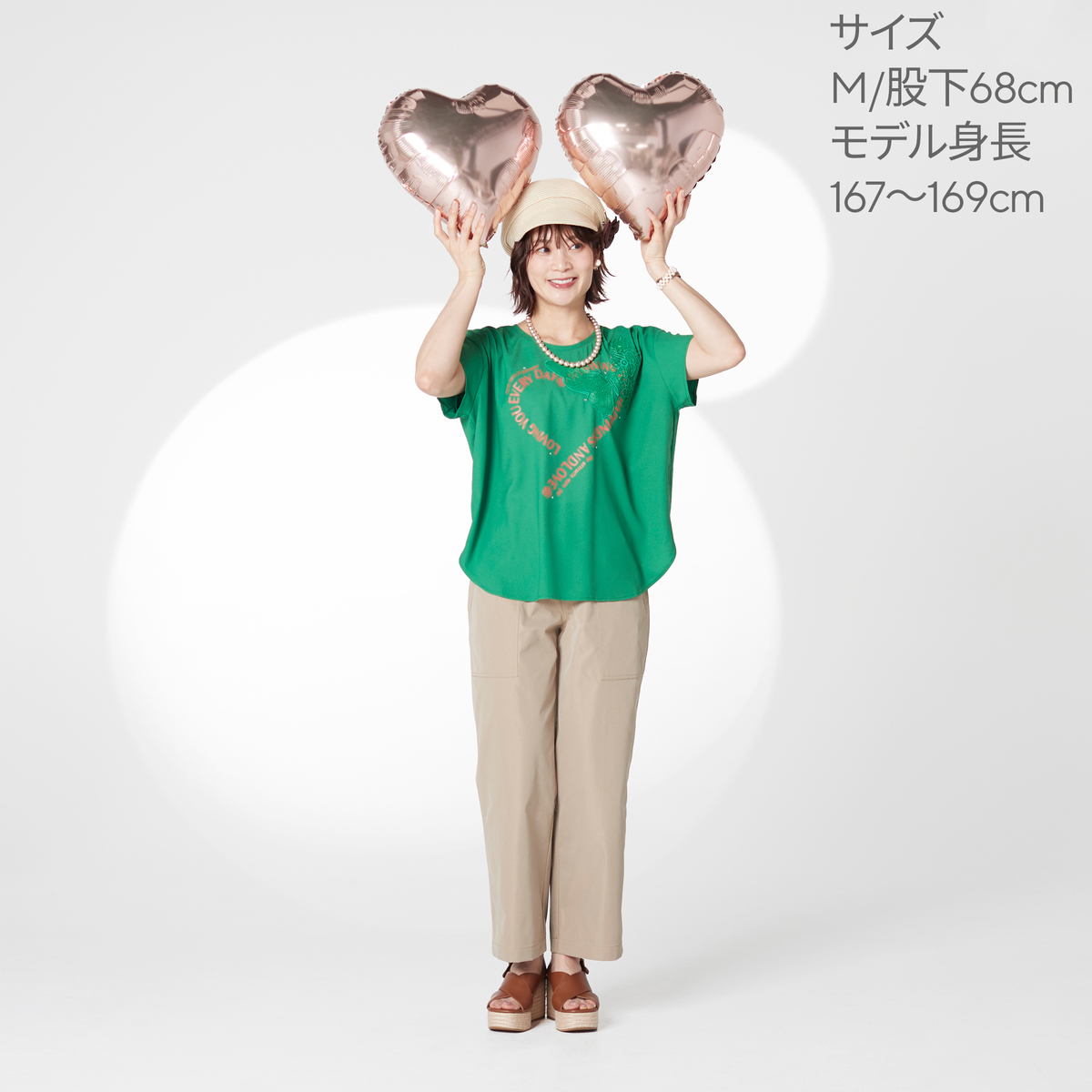No. 753152 &LOVE選べる股下HAPPY刺繍の撥水セミワイドパンツ
