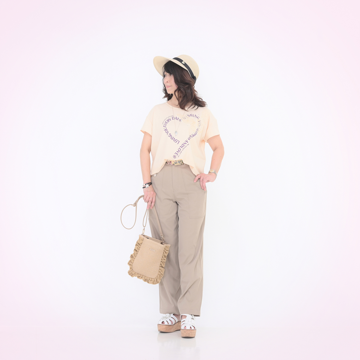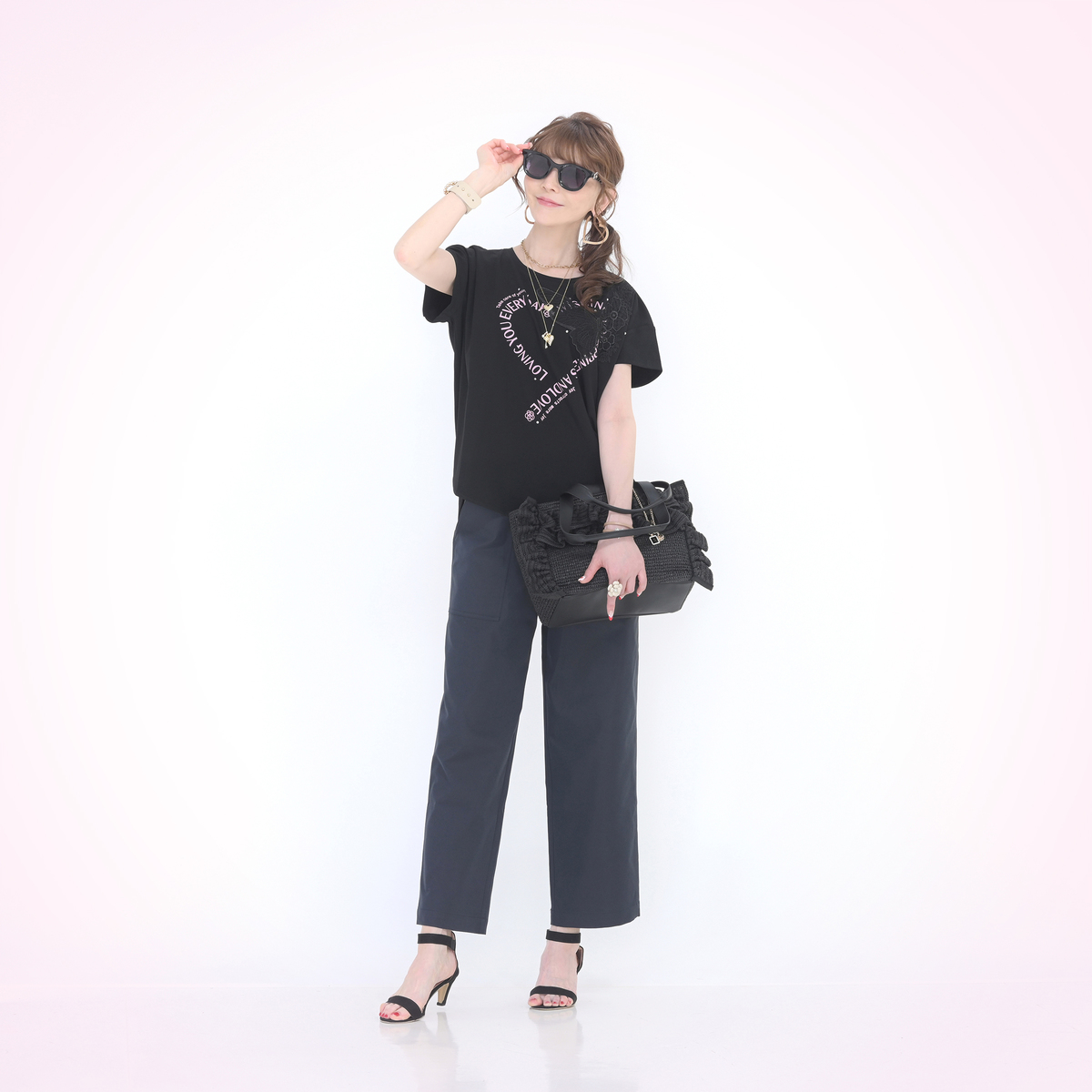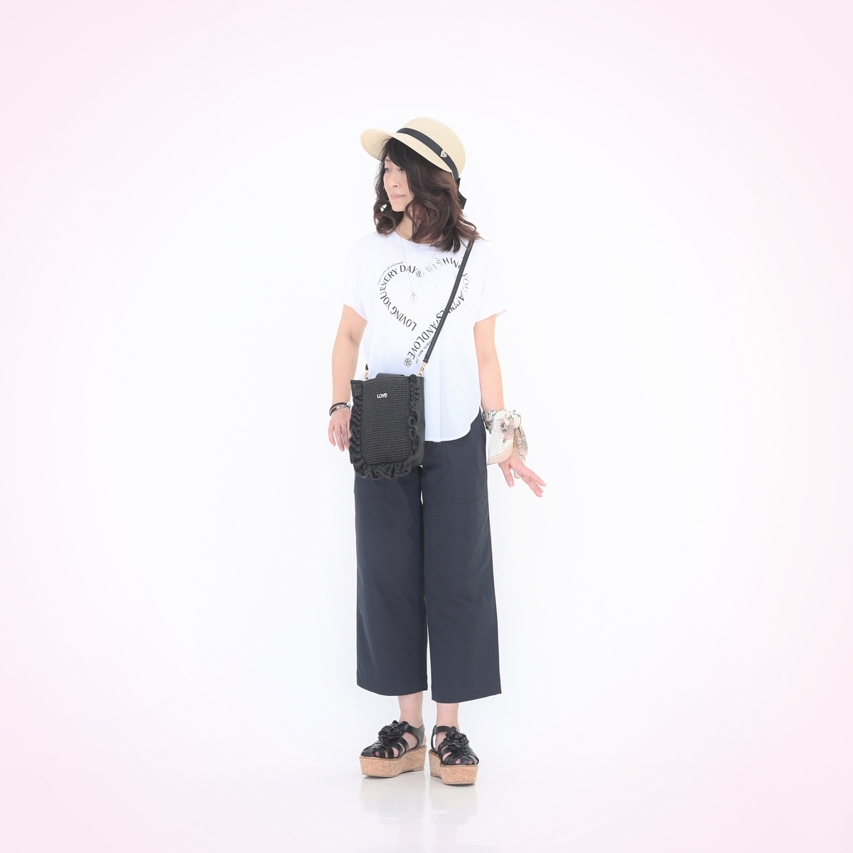 No. 753152 &LOVE選べる股下HAPPY刺繍の撥水セミワイドパンツ