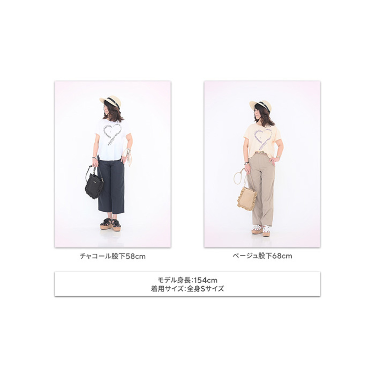股下は、58cmと68cmの2サイズをご用意しました。身長やスタイリングに合わせてお選びいただけます