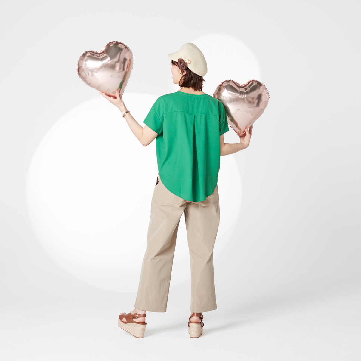 薄手で軽やかなジョーゼット調布帛素材を使用。さらっとした風合いでストレッチ性もあり、程良いハリ感で美しいシルエットをキープします