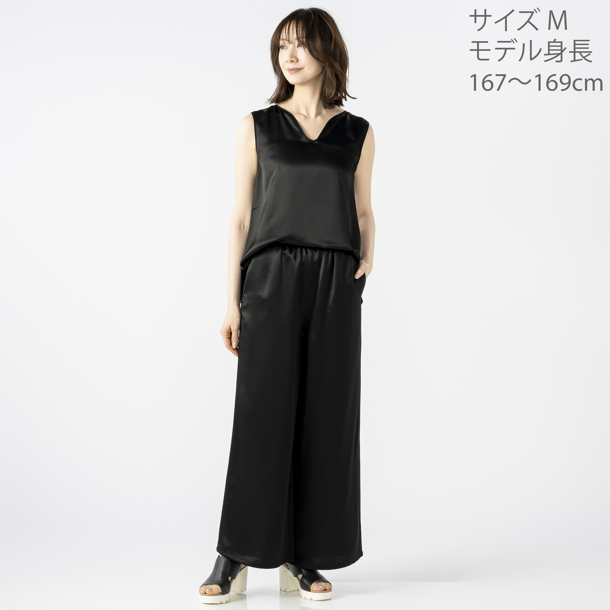 No. 753169 MASAGO サテン素材のワイドパンツ