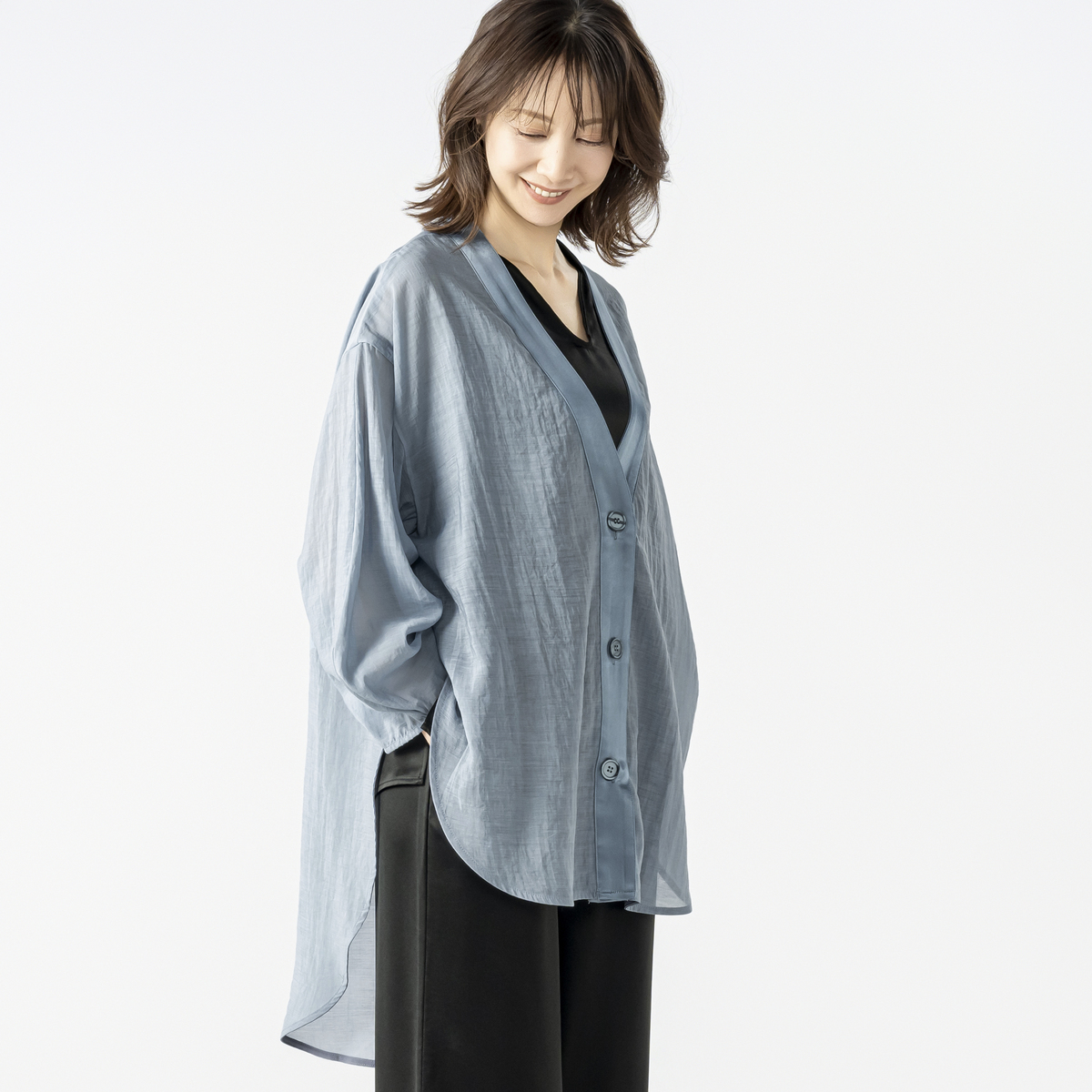 No. 753170 MASAGO シアー素材のVネックカーディガン