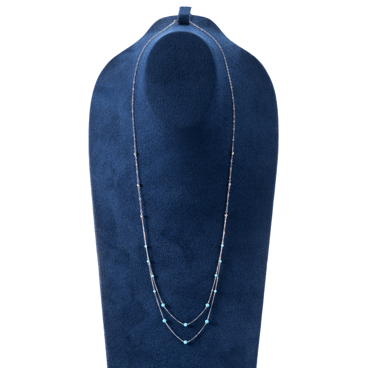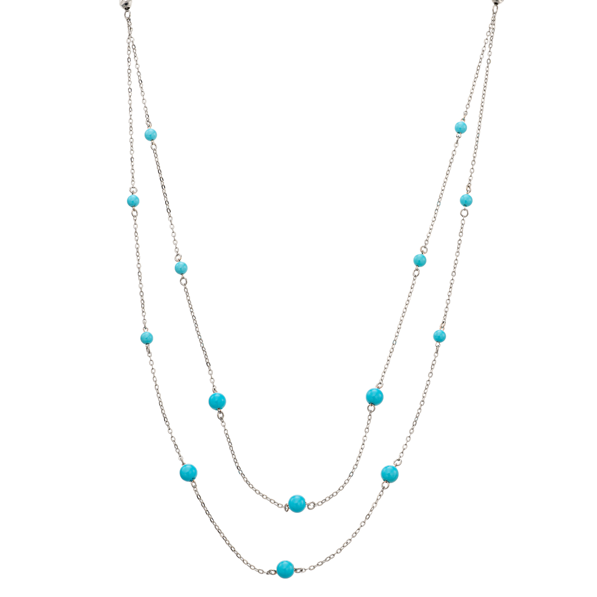 しっとりとした、落ち着きのある艶めきのスリーピングビューティートルコ石をあしらったネックレス。キラキラとしたチェーンとミラーボールが、トルコ石の美しさを一層引き立てます