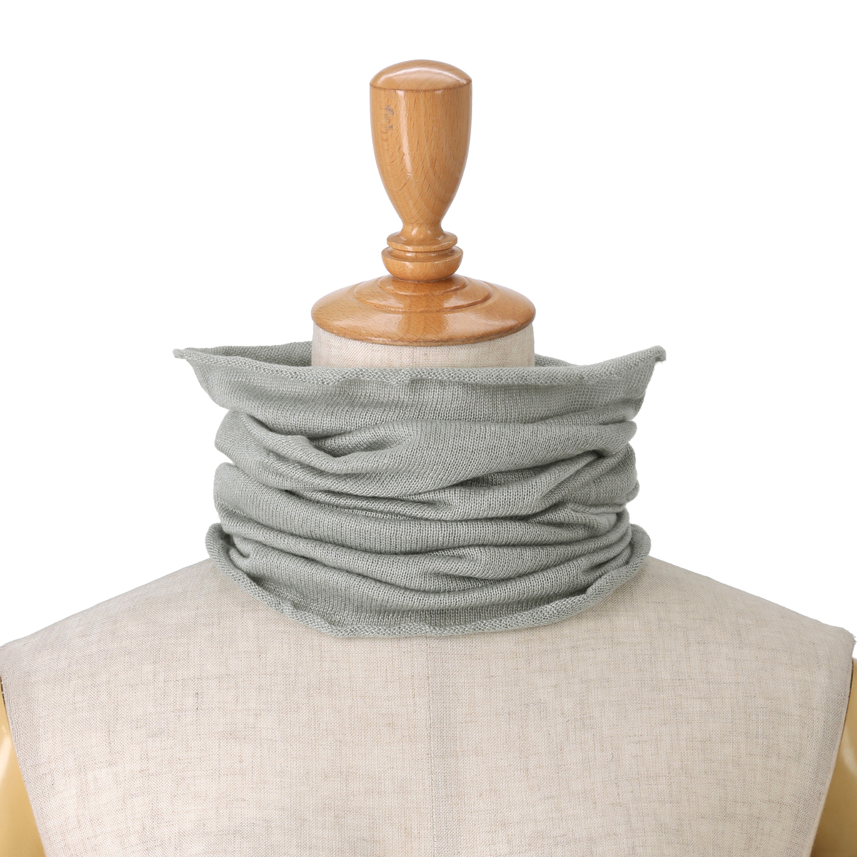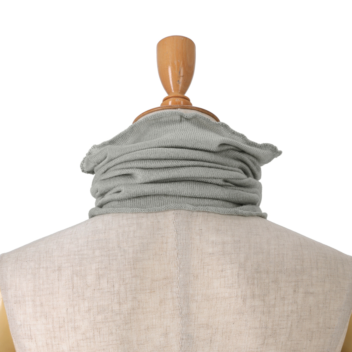 シルク100%のネックウォーマーです。細やかな繊維が首まわりをふんわりと包み、やさしい肌あたり。薄手でとても軽いので、カバンに入れて持ち歩くと重宝します