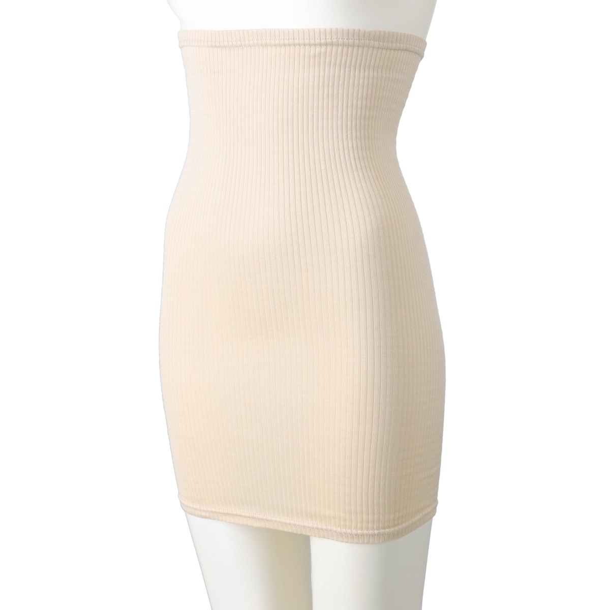 シルク混素材を使用したリブ編みの腹巻き。薄手で着膨れしにくく、身体にほどよくフィット。防寒対策にはもちろん、夏の冷房対策にもおすすめです