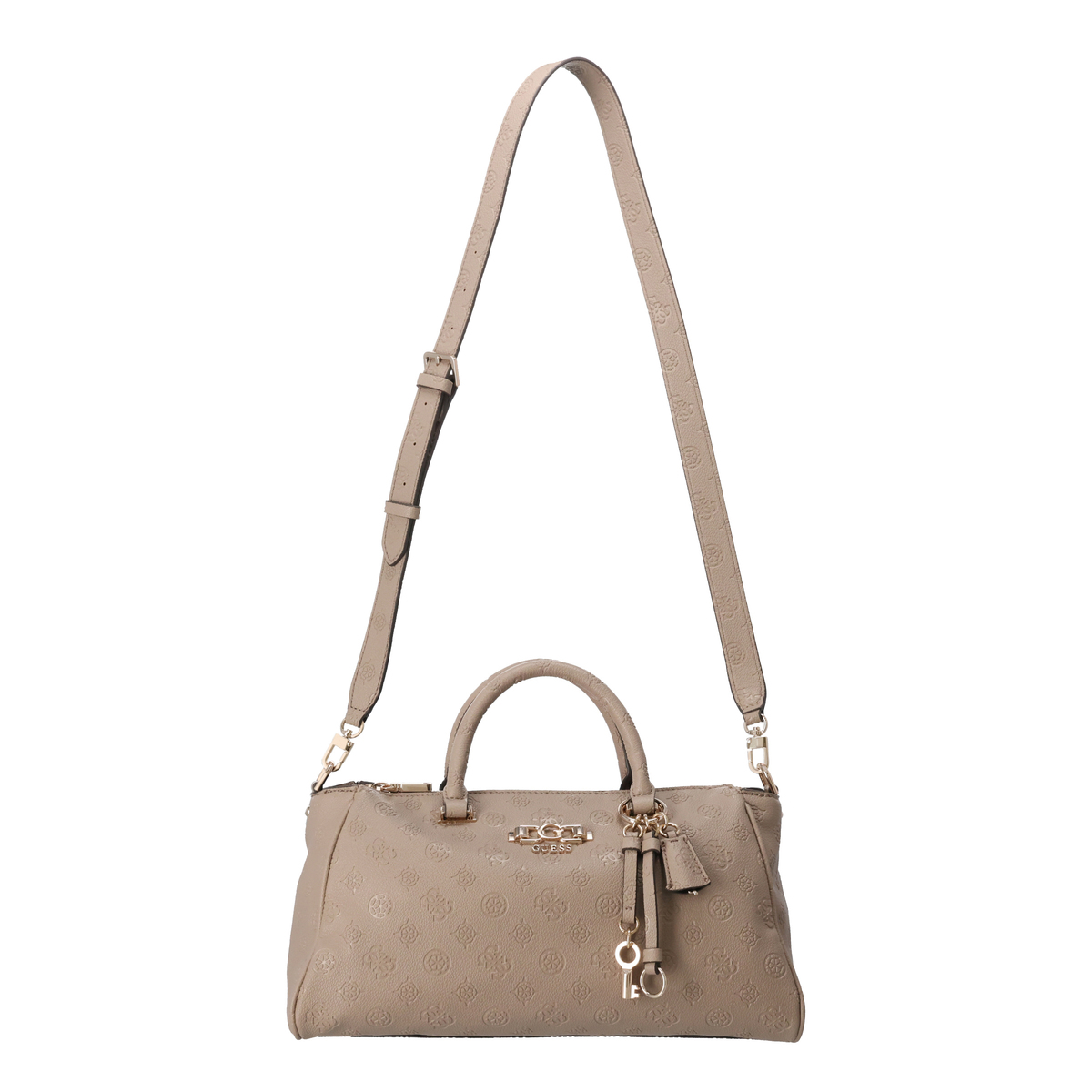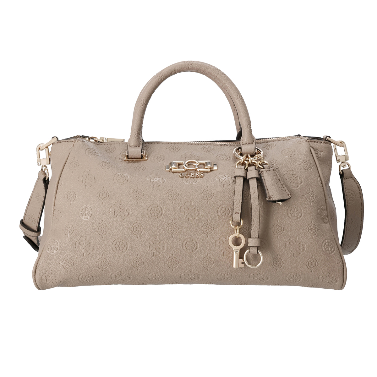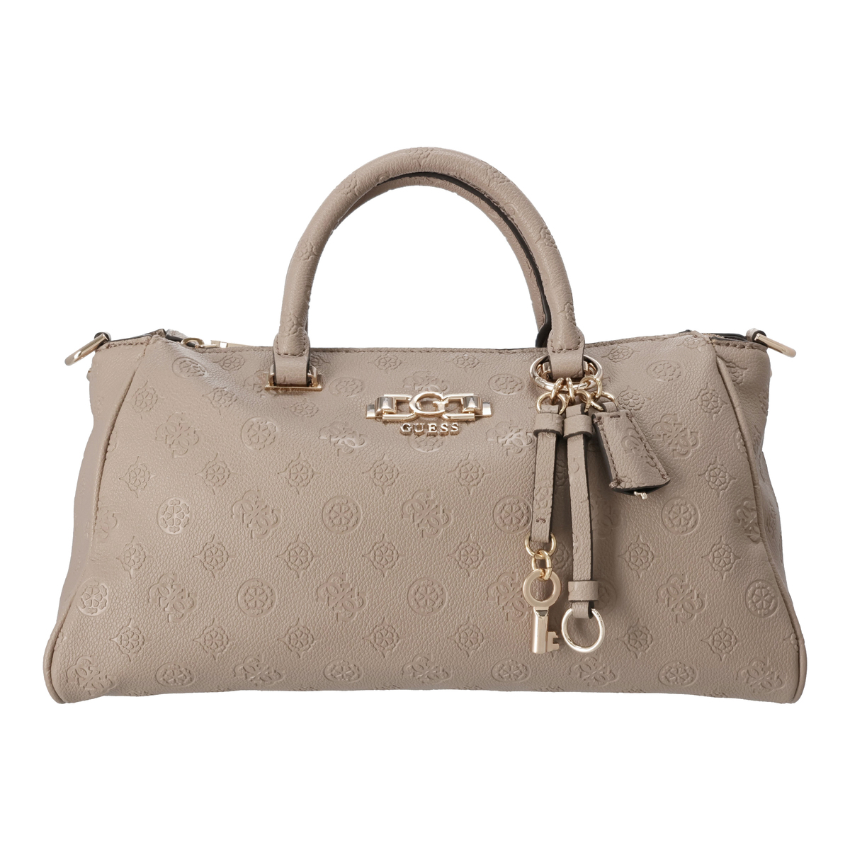 型押しロゴのクラシカルな表情が印象的な2WAYハンドバック。きらりと光るチャームが程よい華やかさを添え、コロンと丸みのあるフォルムが装いにやわらかな雰囲気を生みます。手持ちでも肩掛けでも使える付属ショルダー付きで、日常から特別なシーンまで自然に馴染む使い心地です