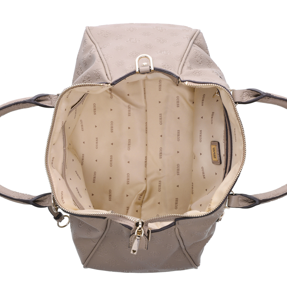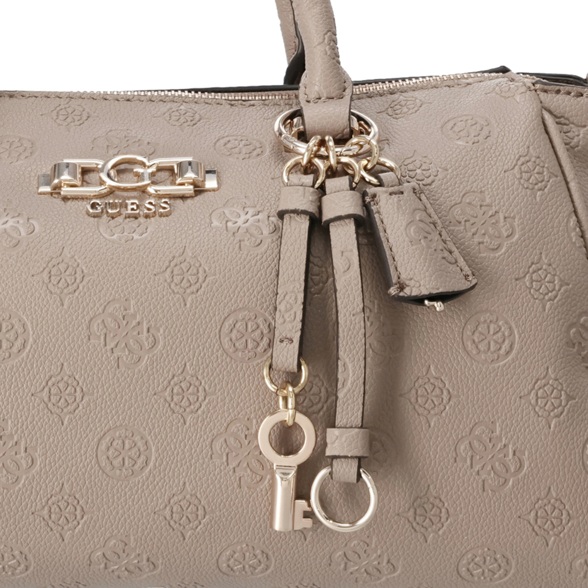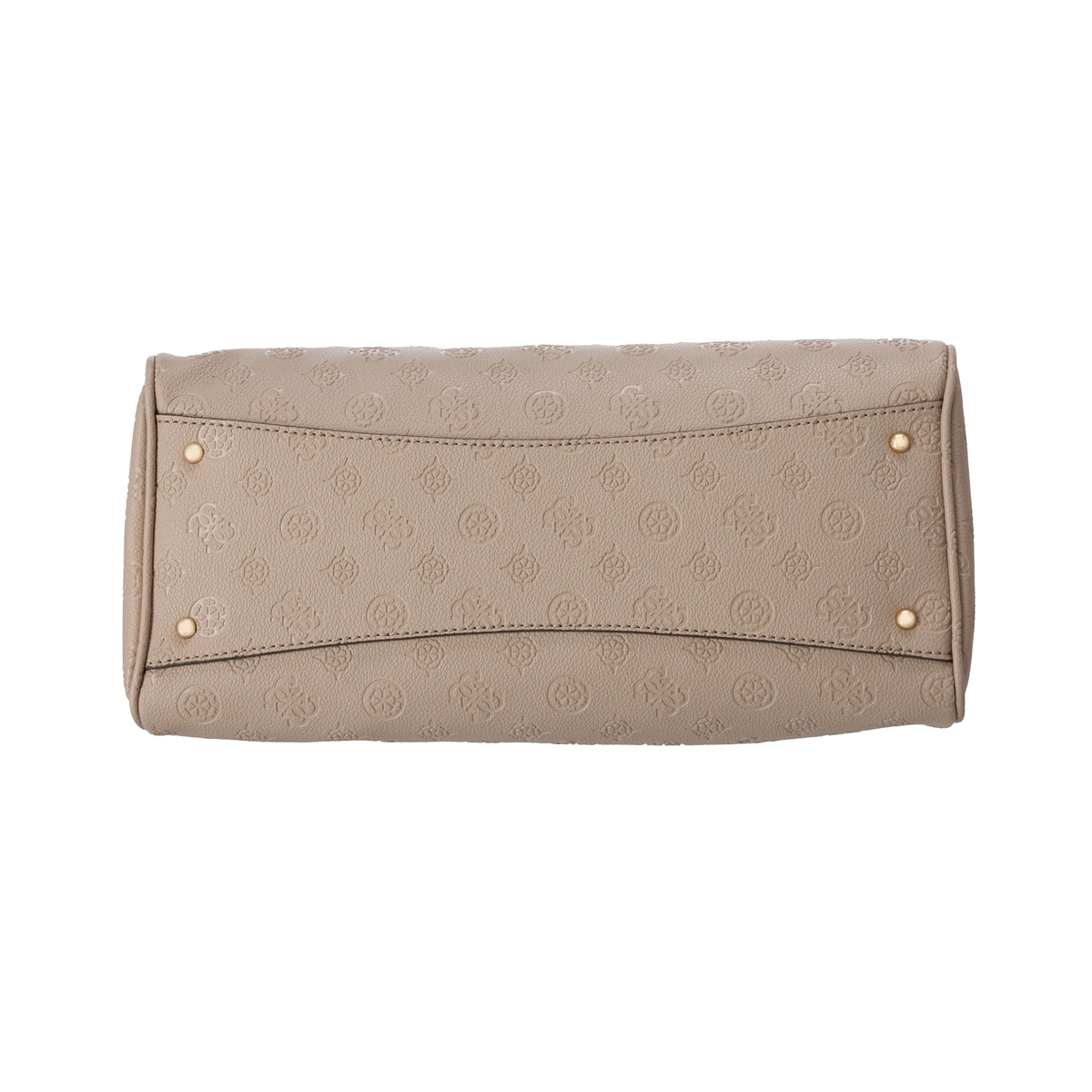型押しロゴのクラシカルな表情が印象的な2WAYハンドバック。きらりと光るチャームが程よい華やかさを添え、コロンと丸みのあるフォルムが装いにやわらかな雰囲気を生みます。手持ちでも肩掛けでも使える付属ショルダー付きで、日常から特別なシーンまで自然に馴染む使い心地です