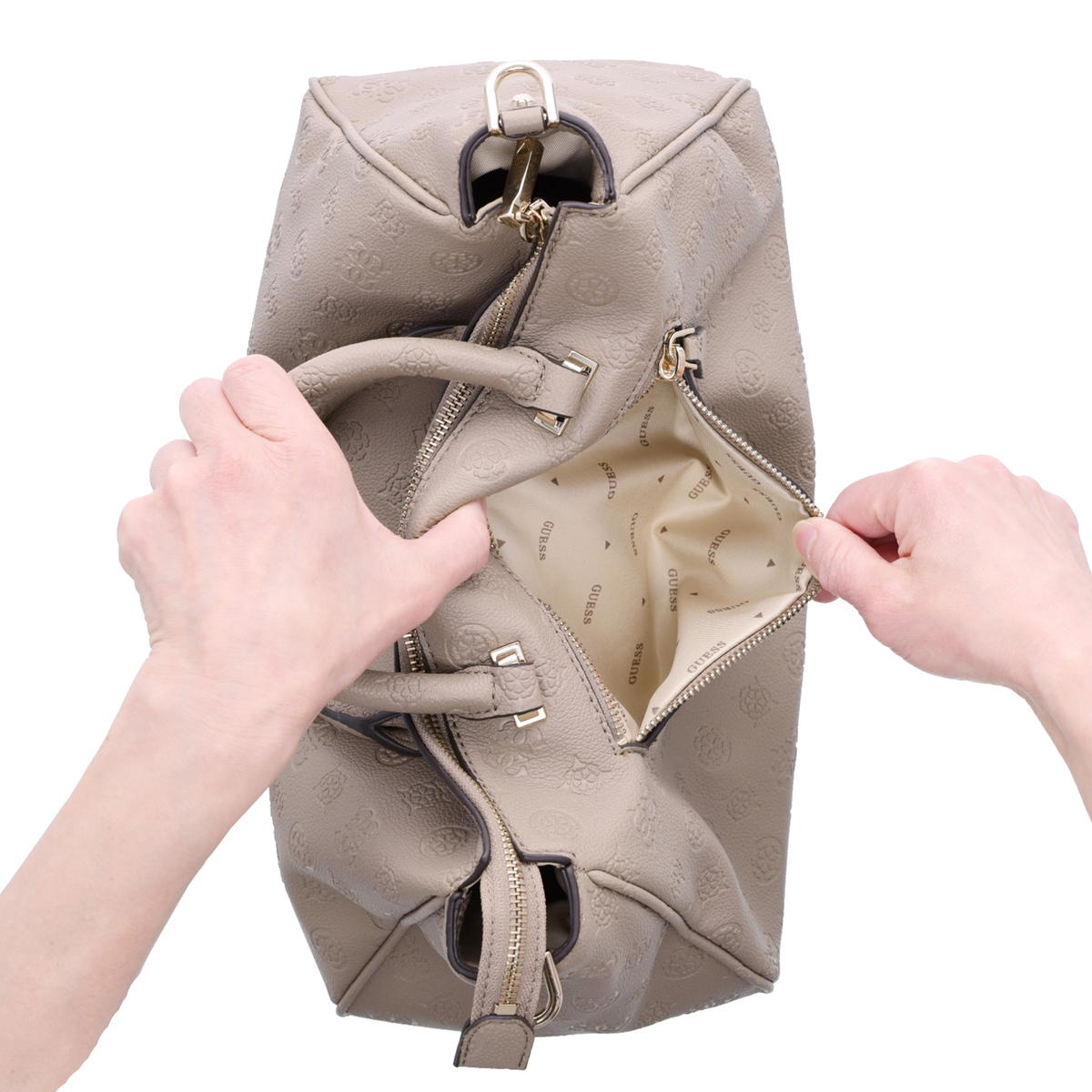 [サイズ(約)] 縦19×横35×マチ11.5cm ハンドル立ち上がり:8cm ショルダー立ち上がり:48〜58cm [重量(約)]※付属品含む 680g [素材] 合成皮革 ※裏地有 [仕様] 付属(取り外し可):ショルダー×1 チャーム×1 保管袋×1 開閉:ファスナー式 底ビョウ:有 [ポケット] 内側:オープンポケット×2 ファスナーポケット×1 外側:ファスナーポケット×1 [注意事項] ※合成皮革部分は、水分に大変弱く、シミ・水ぶくれの原因となり、色落ち、色移りする場合がありますのでご注意ください ※雨や水に濡らした場合は、素早く乾いた柔らかい布で水気を取り、形を整えて必ず陰干ししてください ※ドライヤー、アイロン、暖房器具等、高温での乾燥は革の収縮、硬化の原因となりますのでお避けください ※摩擦により色落ちすることがあります。他の衣類や持ち物への色移りにご注意ください ※ご家庭での洗濯はお避けください 【ミャンマー製】