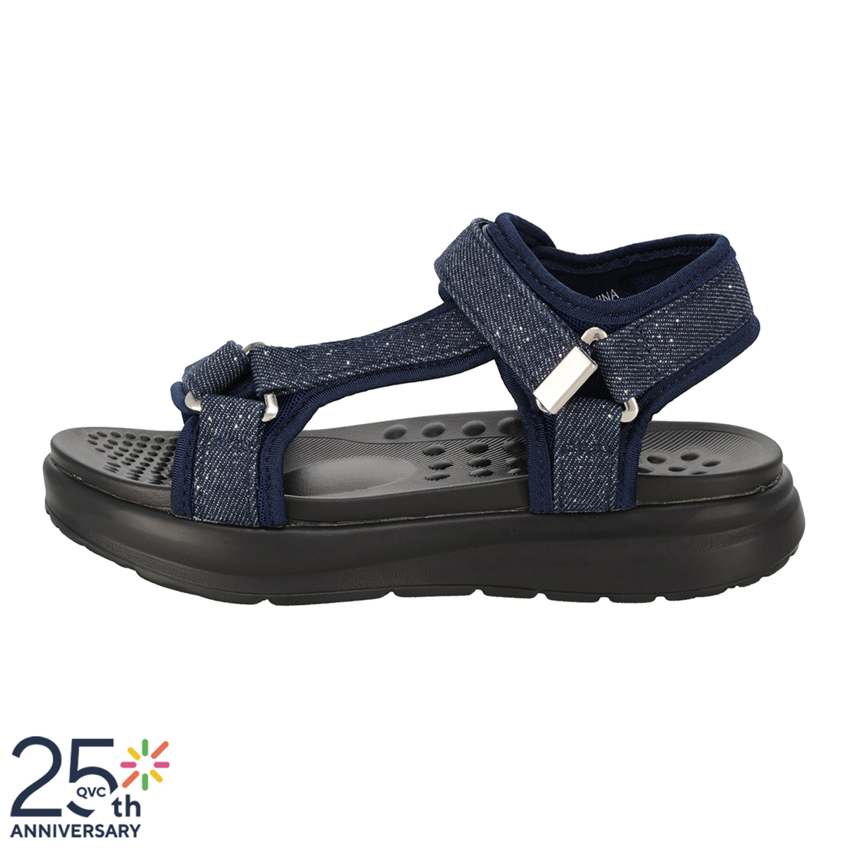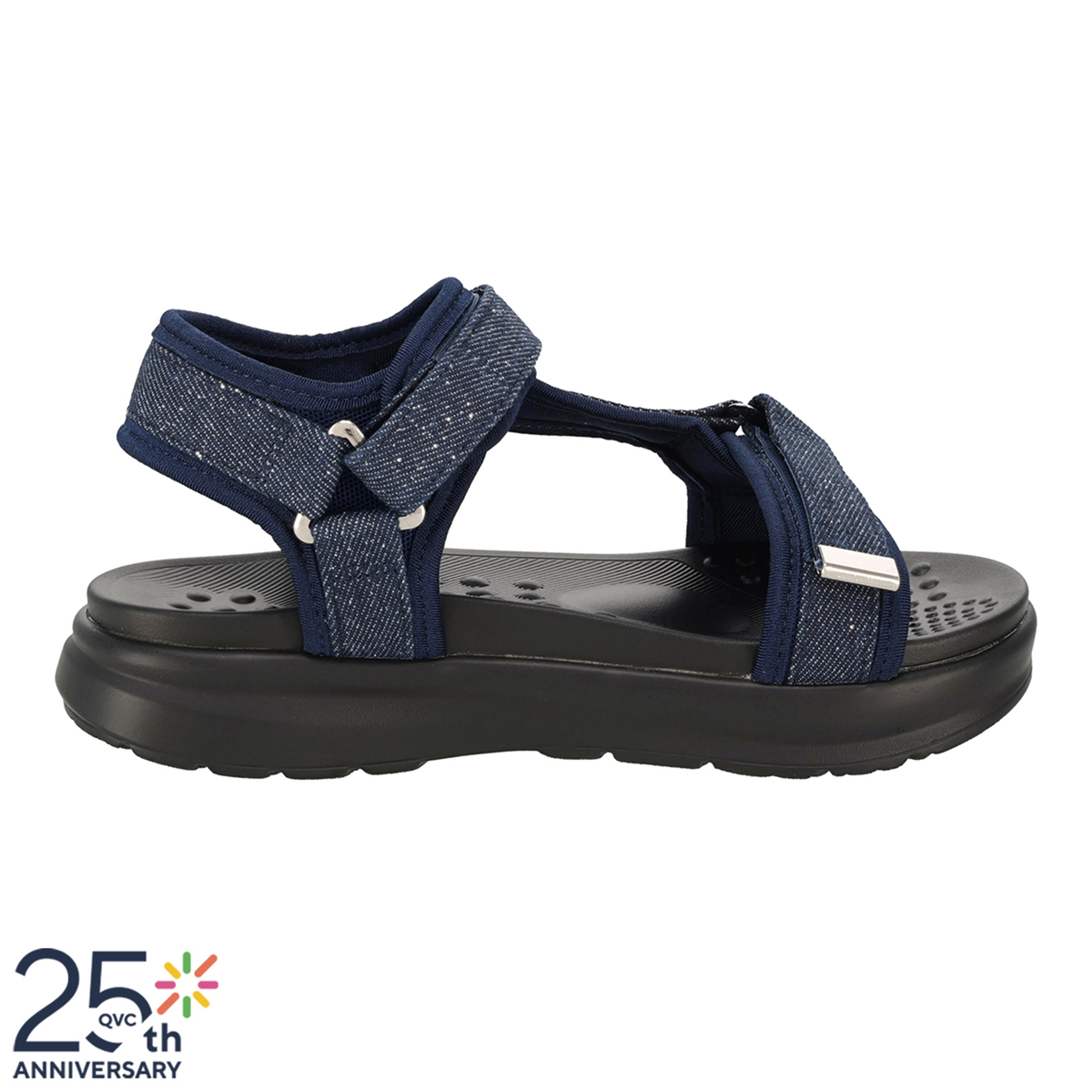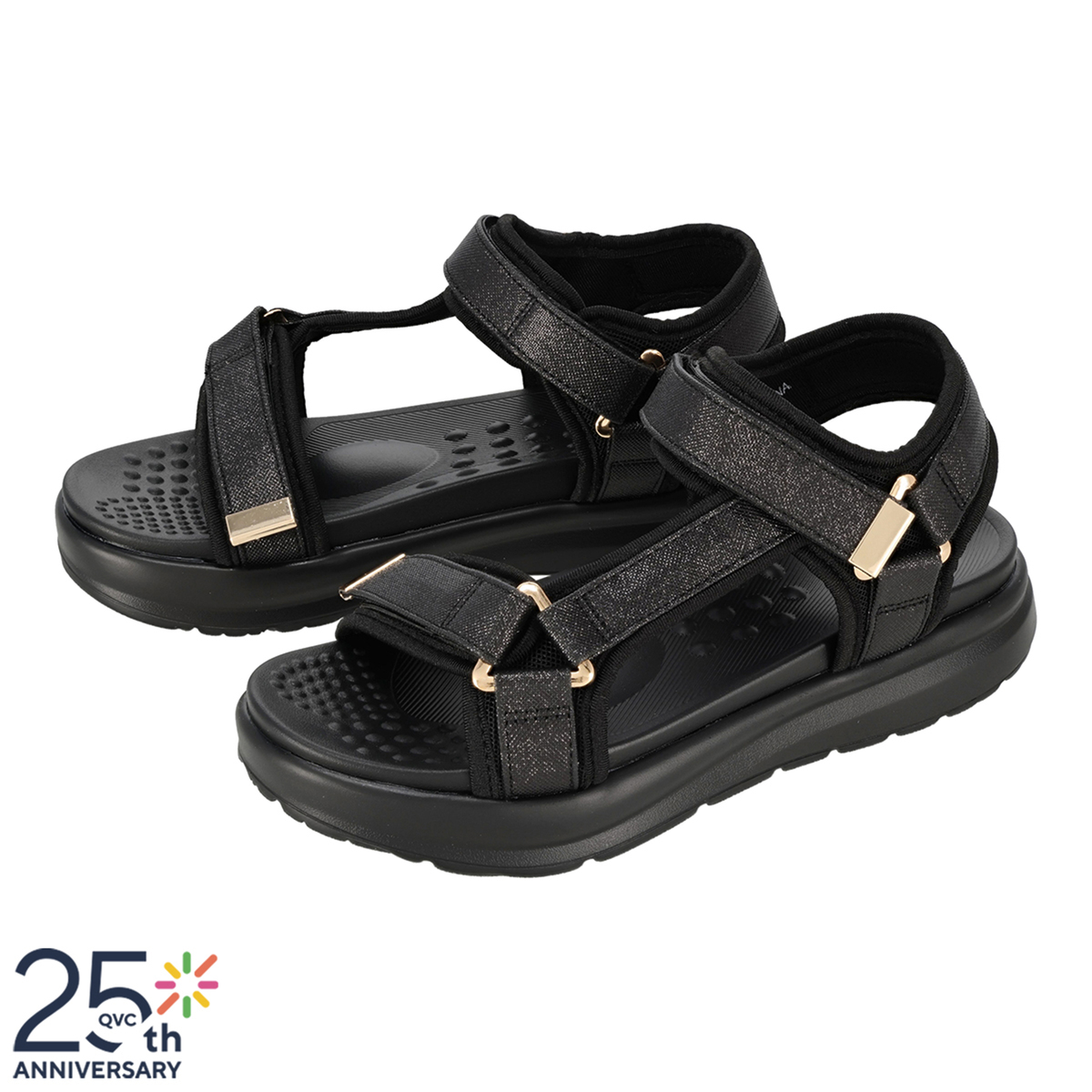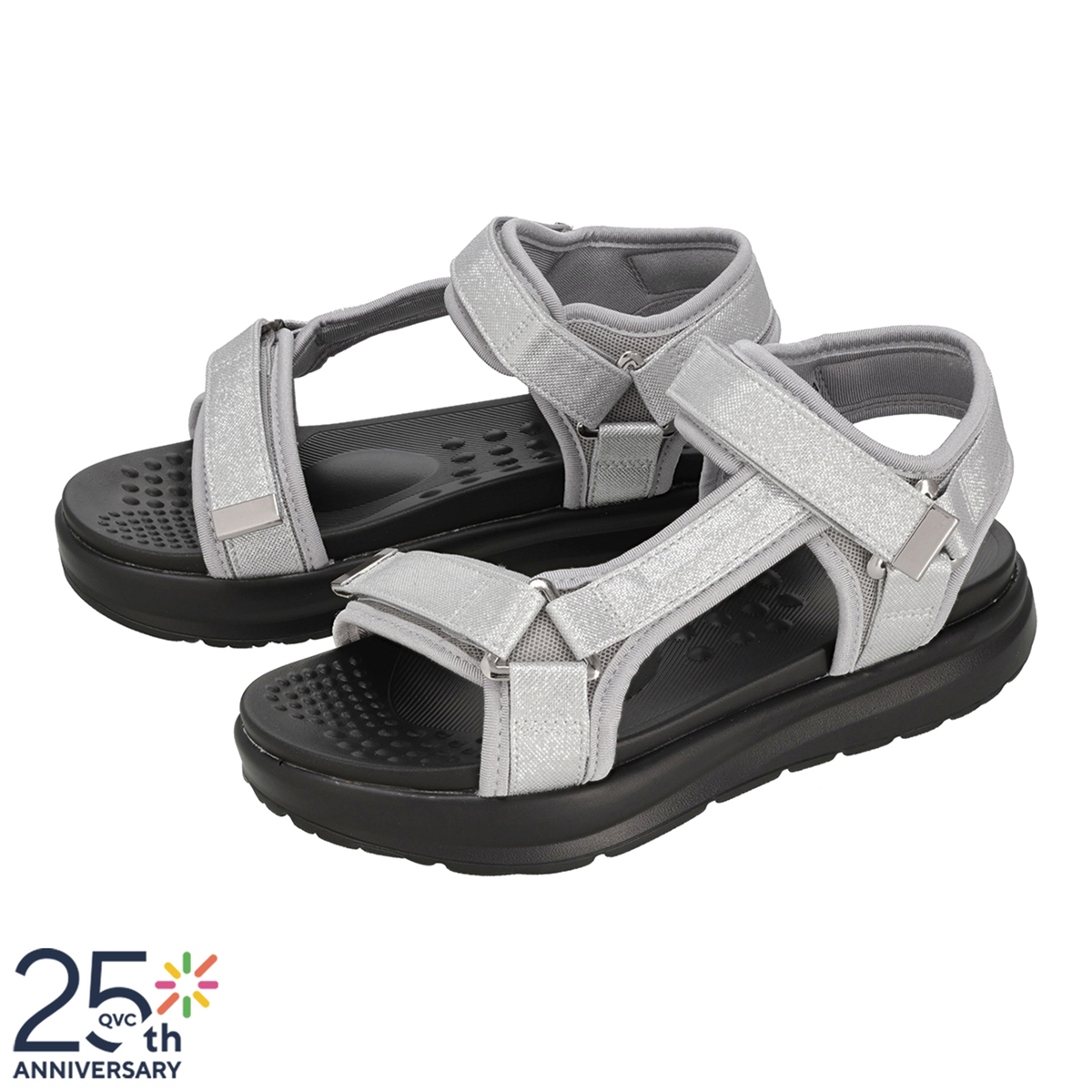 [対応サイズ] S:22.0〜22.5cm M:23.0〜23.5cm L:24.0〜24.5cm LL:25.0〜25.5cm [重量(約)]240g(Mサイズ 片方) [ソール厚さ(約)]2.5cm [ヒール高さ(約)]3cm [ワイズ]3E相当 [材質] <シャイニーブラック、シャイニーシルバー> アッパーベルト部分:合成皮革 アッパーメッシュ部分:ポリエステル ソール:ポリウレタン <シャイニーデニム> アッパーベルト部分:ポリエステル 綿 レーヨン ナイロン アッパーメッシュ部分 ポリエステル ソール:ポリウレタン 【中国製】