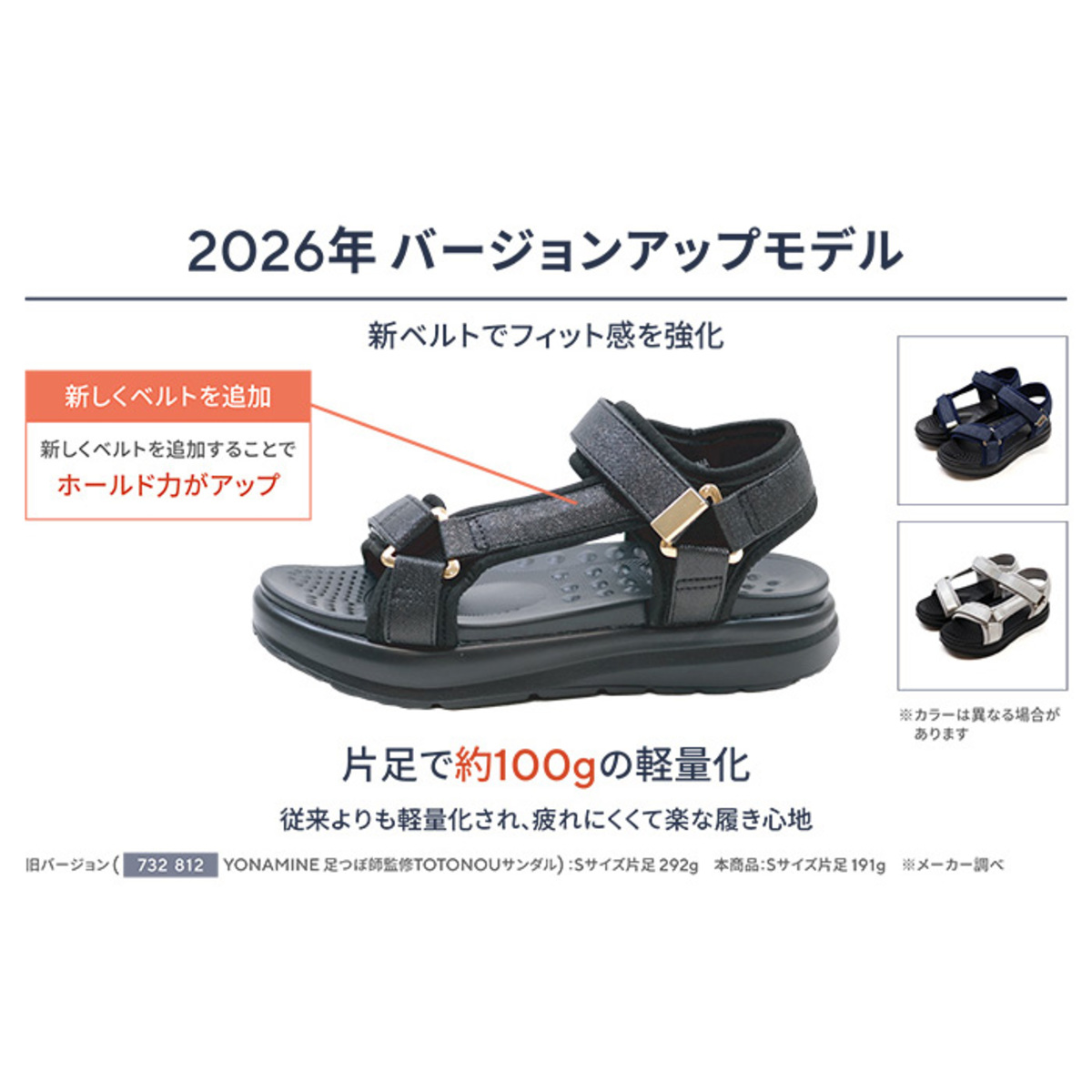 足つぼ師・與那嶺茂人さんが監修したTOTONOUサンダルがバージョンアップして初登場。前バージョンよりもさらに軽量化され、屋内でも履きやすくなりました。また、前後のベルトをサイドのベルトで繋いだデザインにすることで足首や踵のブレが軽減され、歩行時の安定感が増し、美しい姿勢をキープします