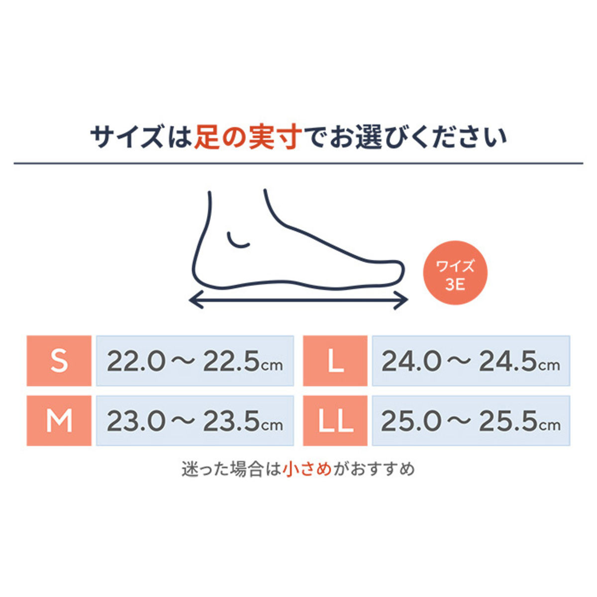 [対応サイズ] S:22.0〜22.5cm M:23.0〜23.5cm L:24.0〜24.5cm LL:25.0〜25.5cm [重量(約)]195g(Mサイズ 片方) [ソール厚さ(約)]2.5cm [ヒール高さ(約)]3cm [ワイズ]3E相当 [材質] <シャイニーブラック、シャイニーシルバー> アッパーベルト部分:合成皮革 アッパーメッシュ部分:ポリエステル ソール:ポリウレタン <シャイニーデニム> アッパーベルト部分:ポリエステル 綿 レーヨン ナイロン アッパーメッシュ部分 ポリエステル ソール:ポリウレタン 【中国製】
