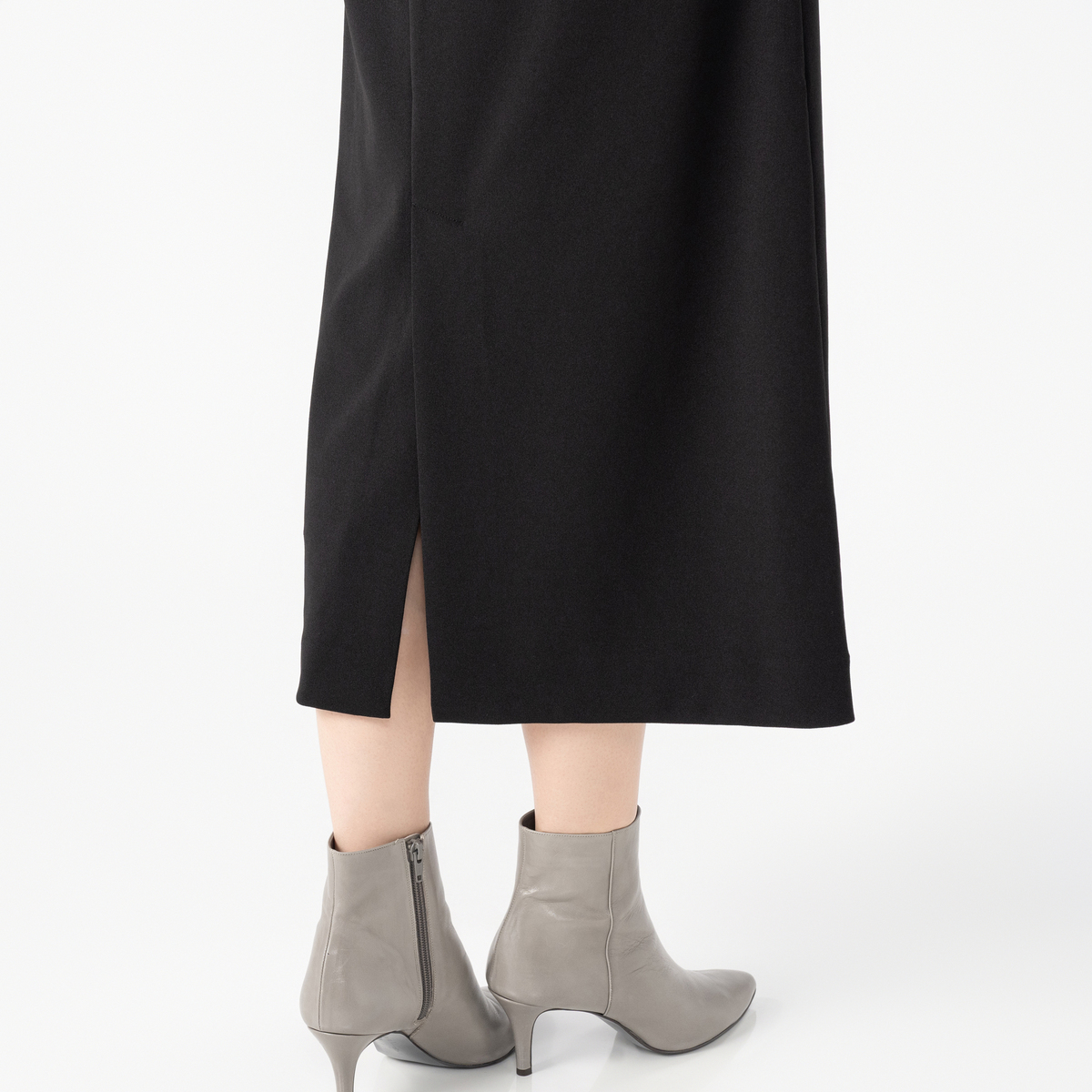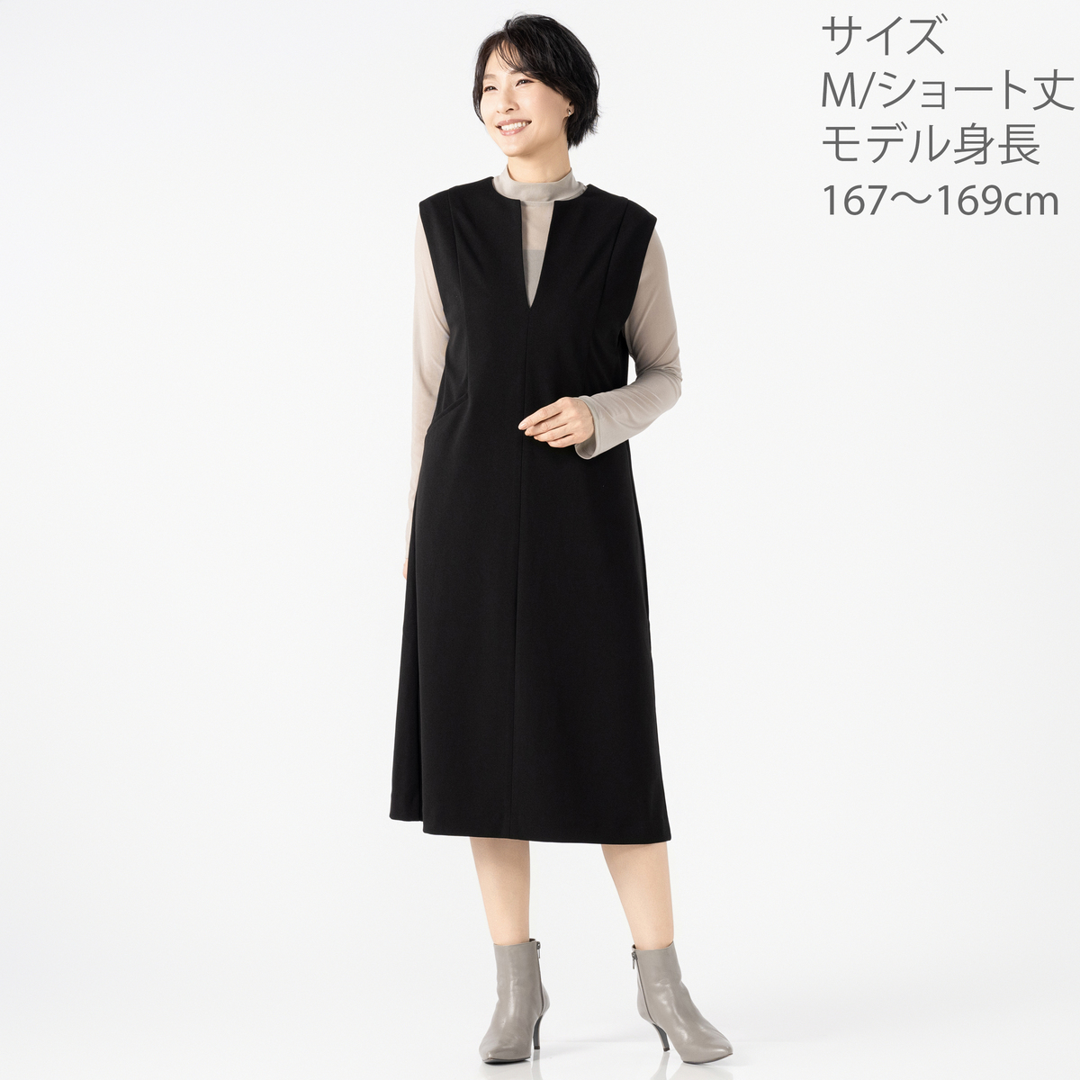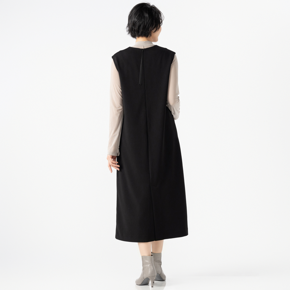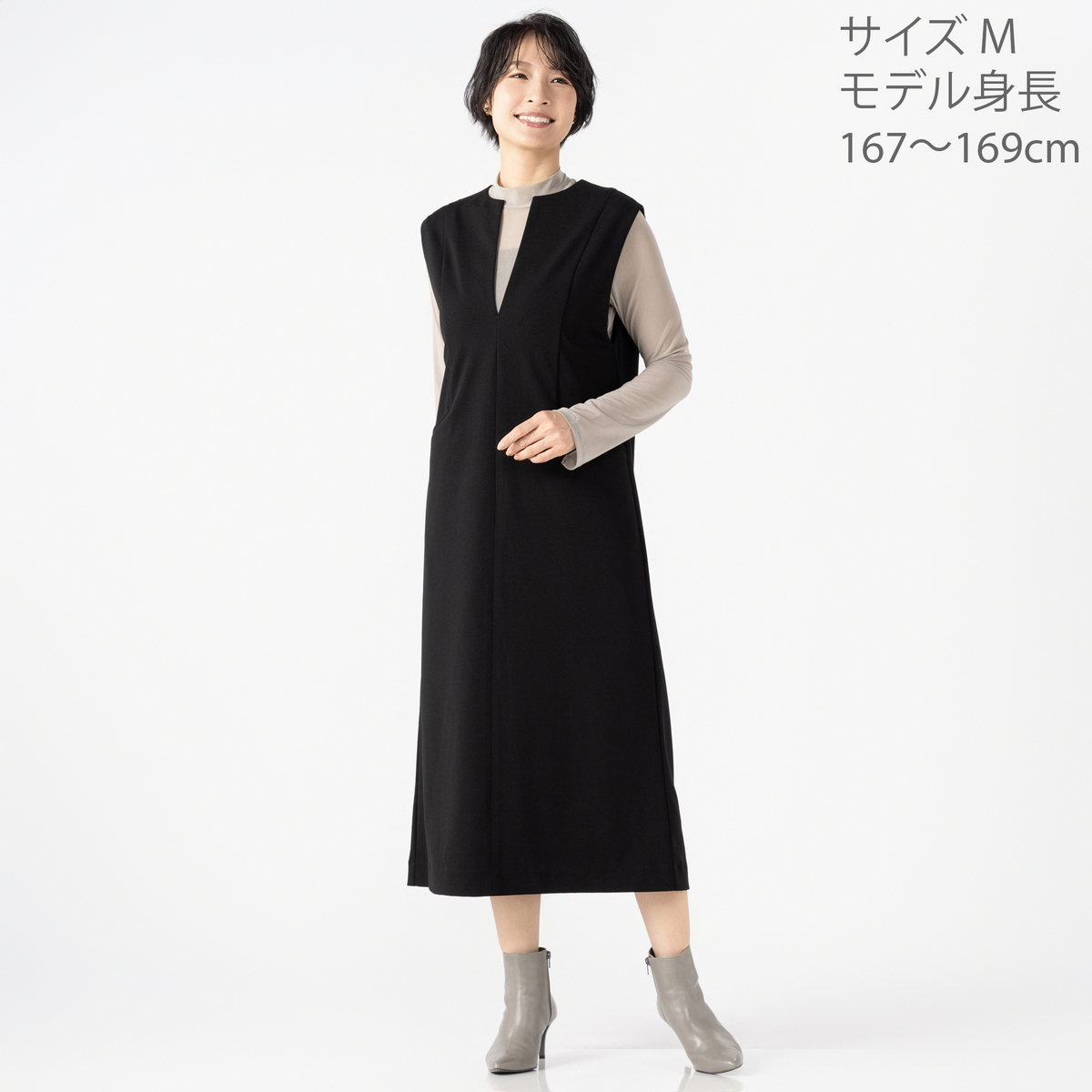 深めのキーネックとIラインシルエットが特徴のジャンスカ。合わせるインナー次第できれいめからカジュアルまで、様々なコーデに活躍してくれます