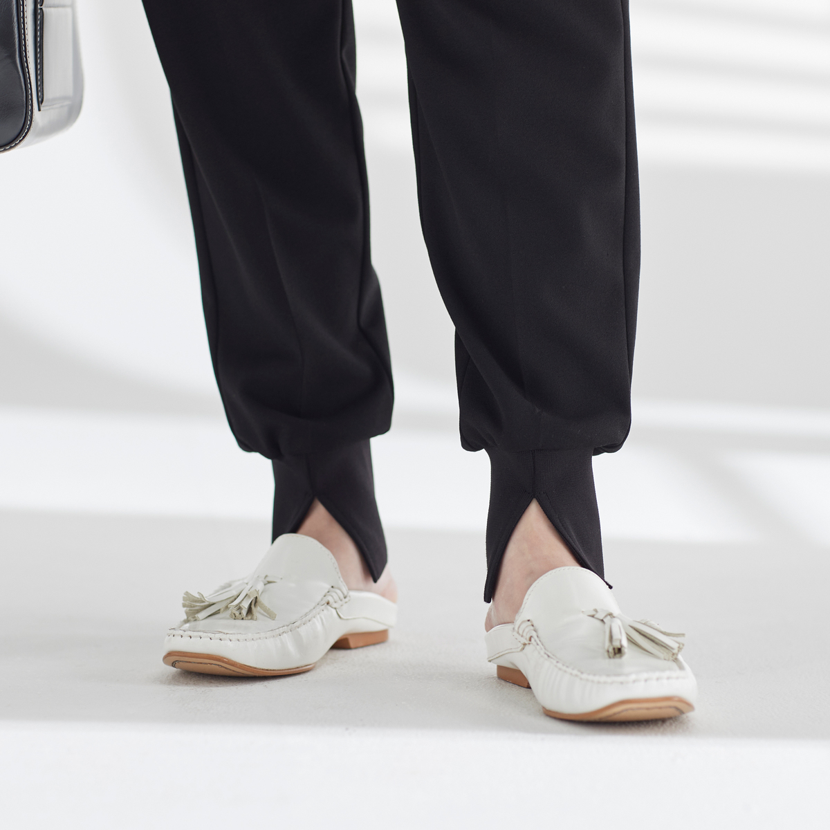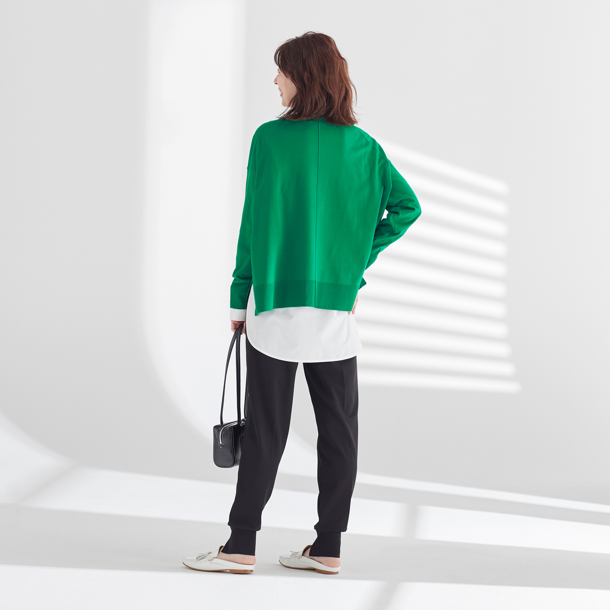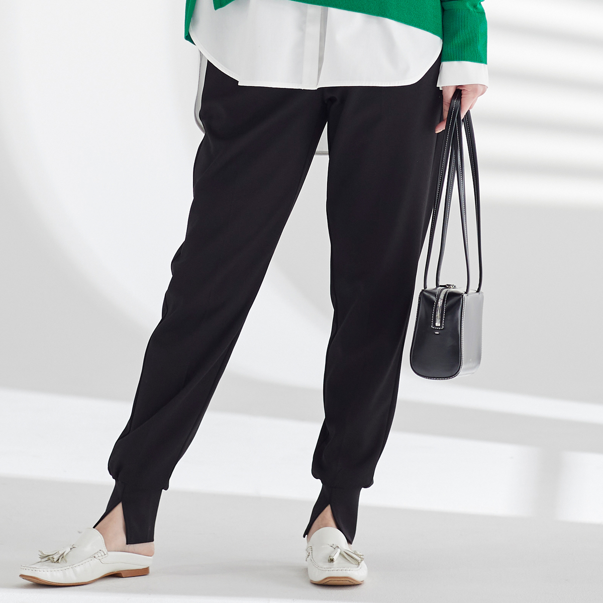スタイリッシュなデザインと穿き心地を両立した大人のジョグパン。センタープレスと裾リブのスリットで脚を細くすっきり見せてくれます