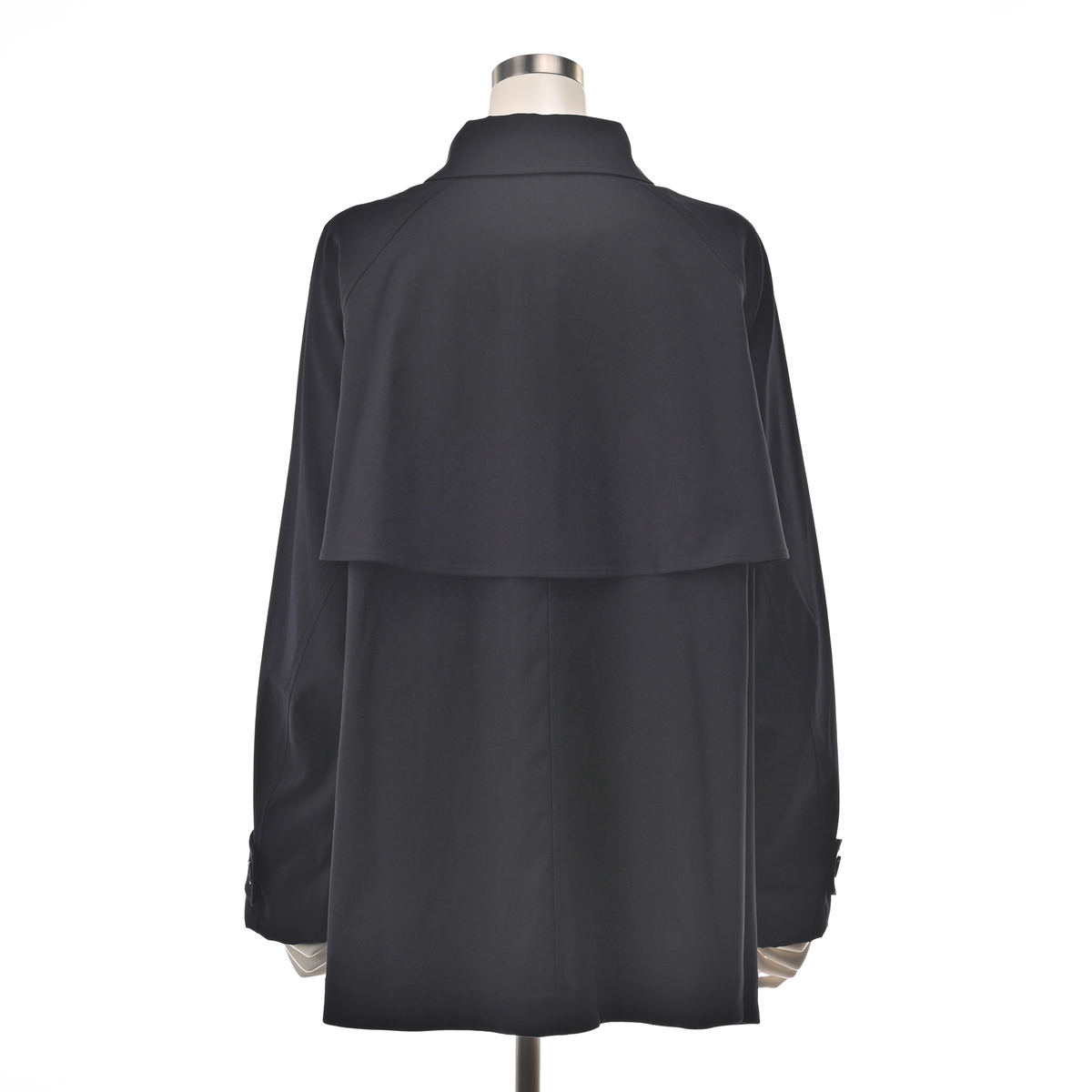大きめのステンカラーが特徴。チンストラップを留めることでスタンドカラーとしても着用でき、気温や気分に合わせて表情を変えて楽しめます