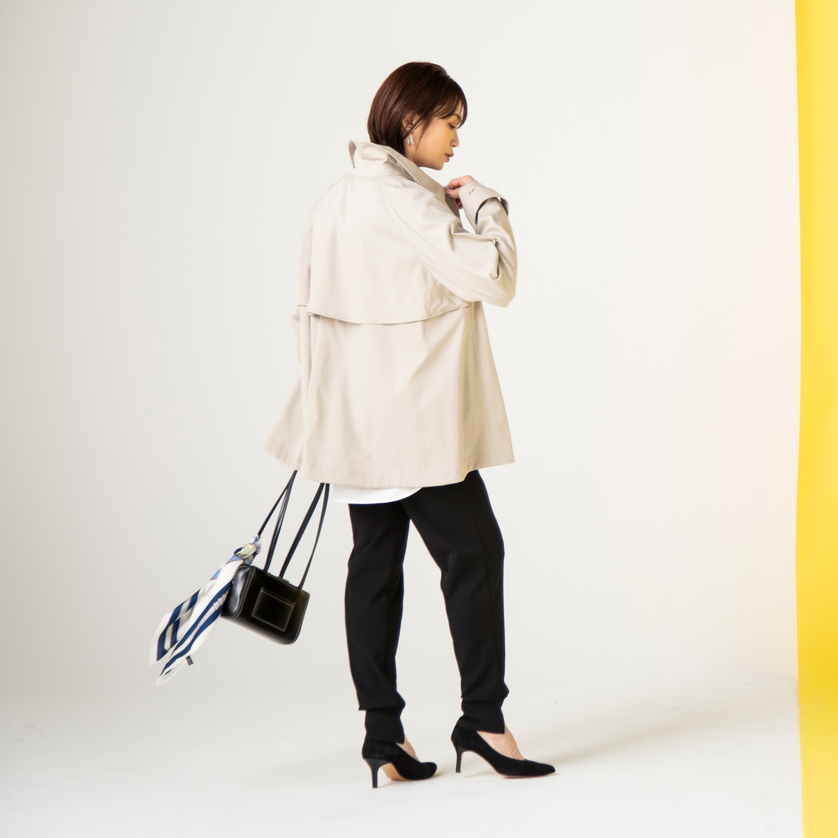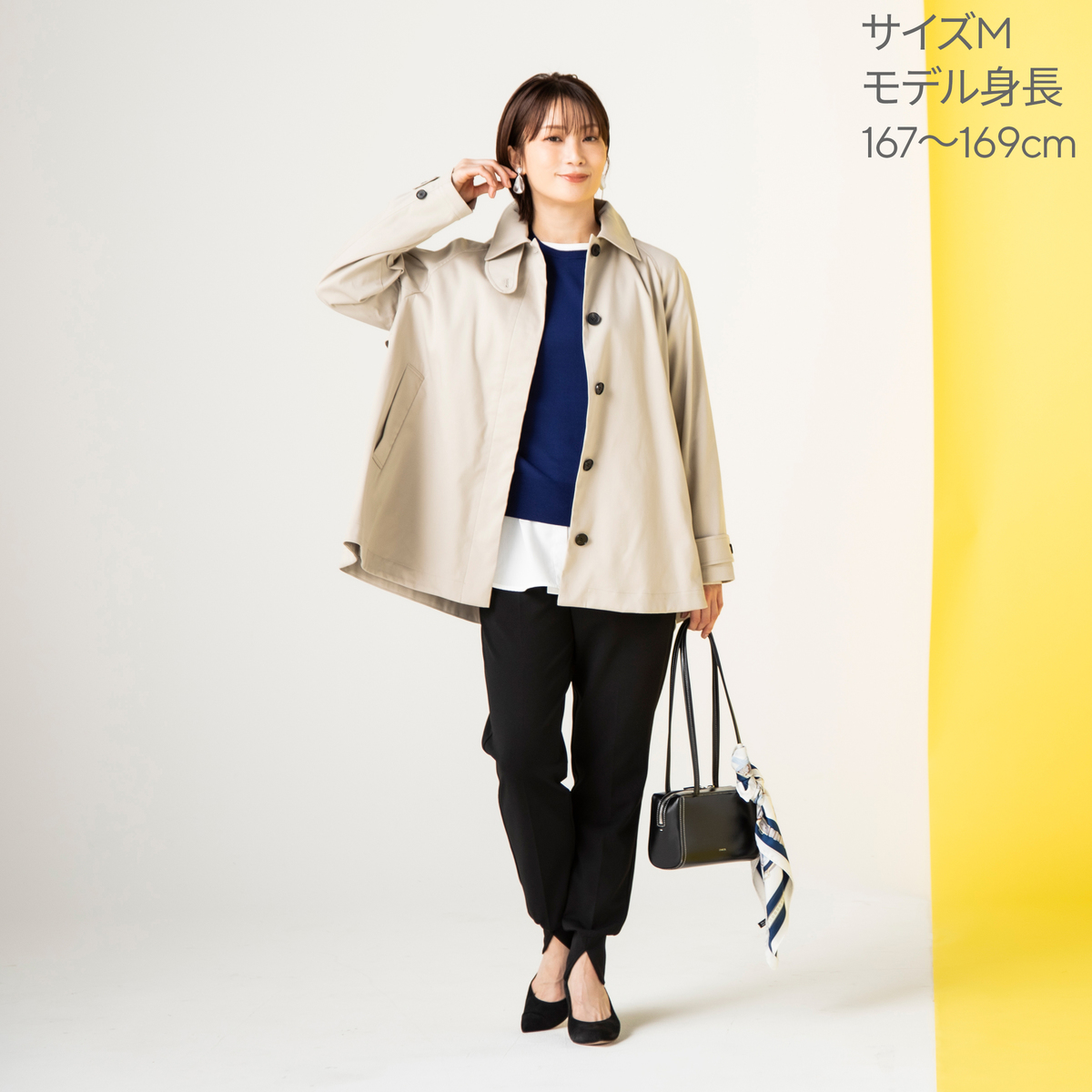 カジュアルにもきれいめにも合わせやすい、Aラインスプリングコート。バランス良く着こなせるミドル丈で、裾に向かって広がるテントシルエットが身体のラインをさりげなくカバーします