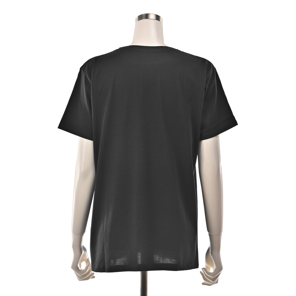 箔ロゴが上品に映えるTシャツ。肌離れのよい綺麗な目面の素材で、ゆったりとしつつ裾に向かって少し締まるシルエットが腰まわりをすっきり見せます