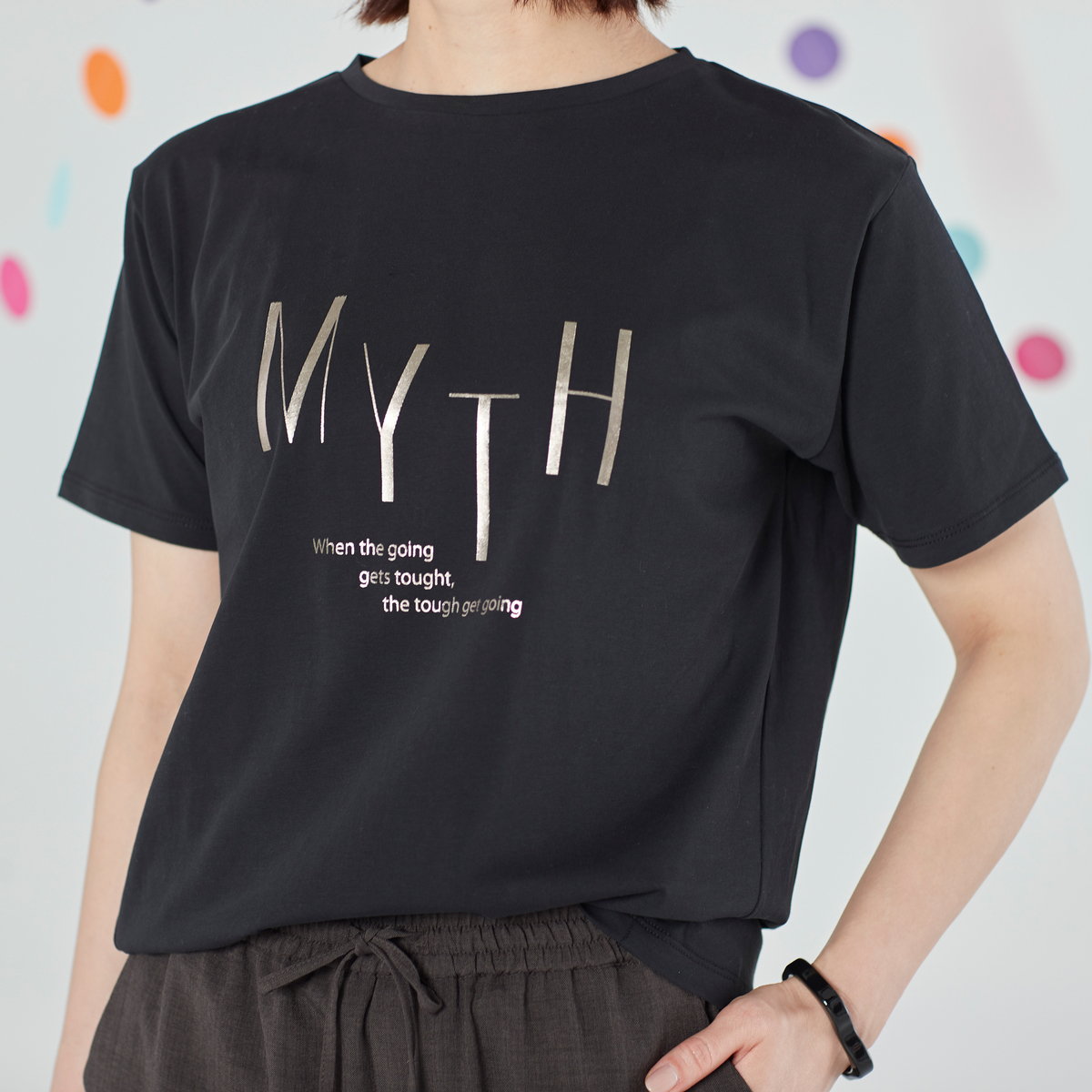 「MYTH」神話。「When the going gets tough the tough get going」強い人は困難にも決してあきらめずに頑張る。という意味のロゴです。意味よりも全体感のバランスとしてロゴ選びをしていますが、前向きになれるようなフレーズを選びました