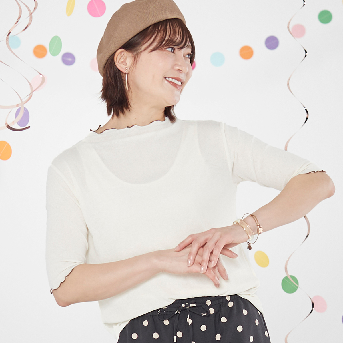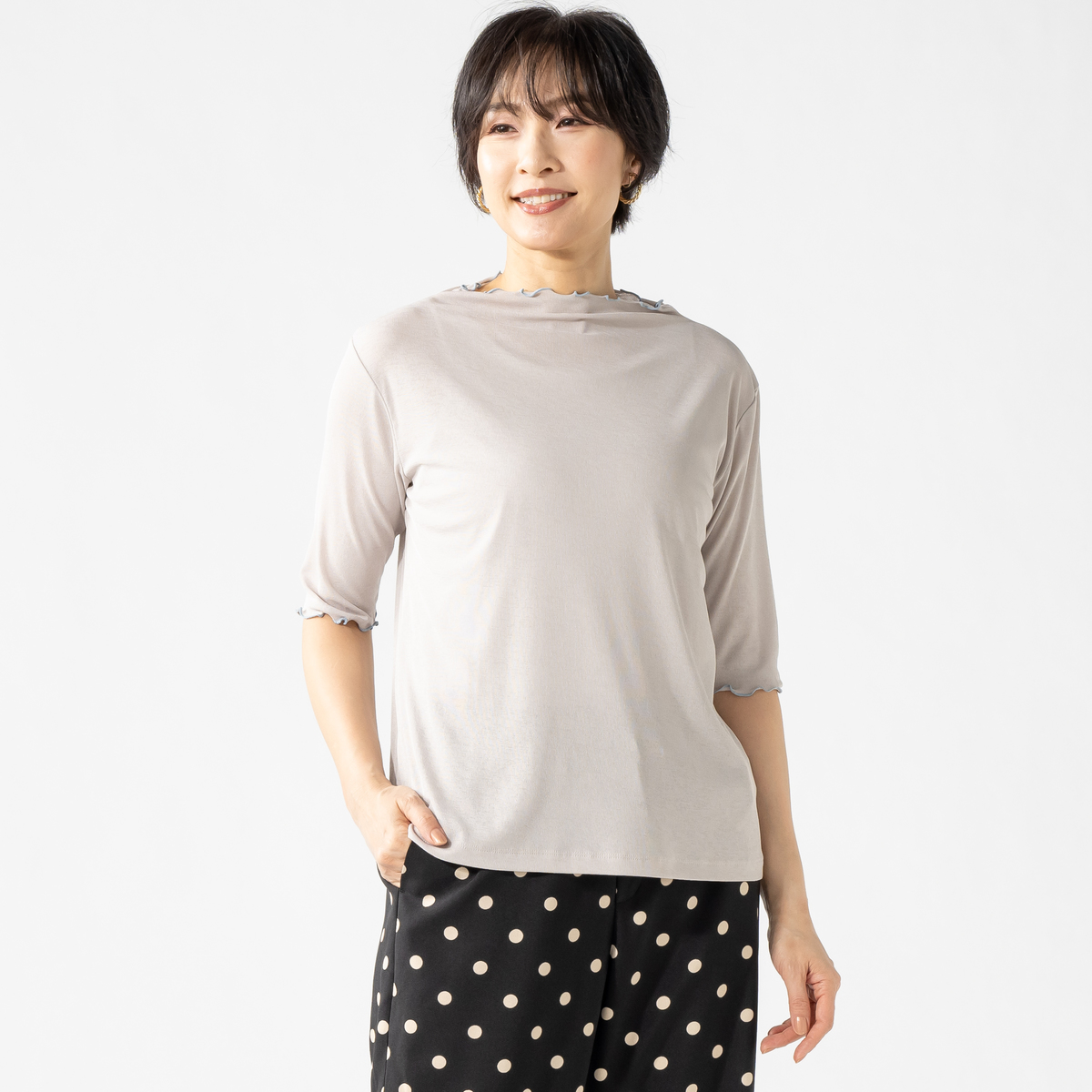 No. 753233 Coeur sucre プチボトルネックアクセント配色シアーTシャツ