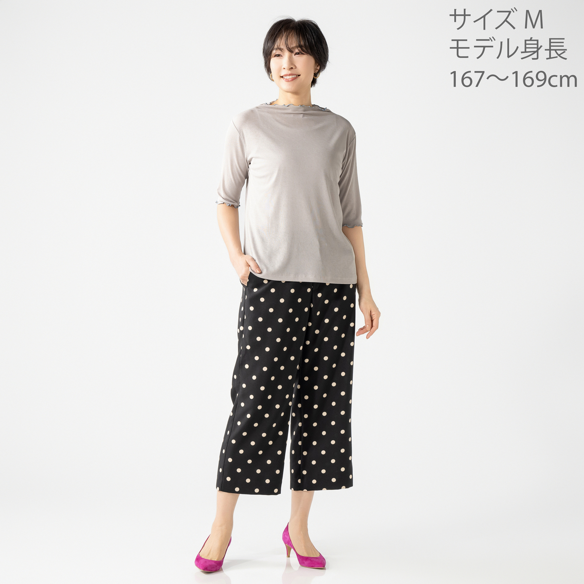 [商品寸法(ヌード)cm] サイズ バスト 着丈 S: 90(72〜80) 58 M: 96(79〜87) 60 L: 102(86〜94) 62 LL: 108(93〜101) 64 3L: 114(100〜108) 65 サイズ 肩幅 袖丈 S: 38 29 M: 40 30 L: 42 31 LL: 44 32 3L: 45 32.5 [素材] ポリエステル 100% [お手入れ] 洗濯機洗い可 [注意事項] ※商品寸法の誤差は多少発生します。ご了承下さい ※洗濯時はネットを使用してください ※濃色の場合は、汗や雨などで濡れた状態や強い摩擦等で他の製品に色移りする場合がありますのでご注意ください ※他の物と分けて洗濯後、すぐに形を整えて干してください ※汗や雨でしめった場合、濃色部分から色移りする場合がありますのでご注意ください ※つけ置き洗いをしないでください ※脱水後は長時間放置しないで、すぐに形を整えて干してください ※アイロンは当て布を使用して掛けてください ※生地の表面の細い繊維が引っ掛かり易いです ※着用・取り扱い時には、アクセサリーやバッグの金具等、引っ掛かり易い物にはご注意ください 【中国製】