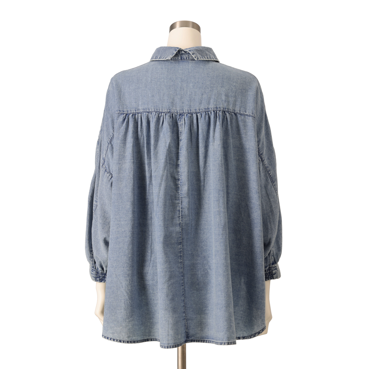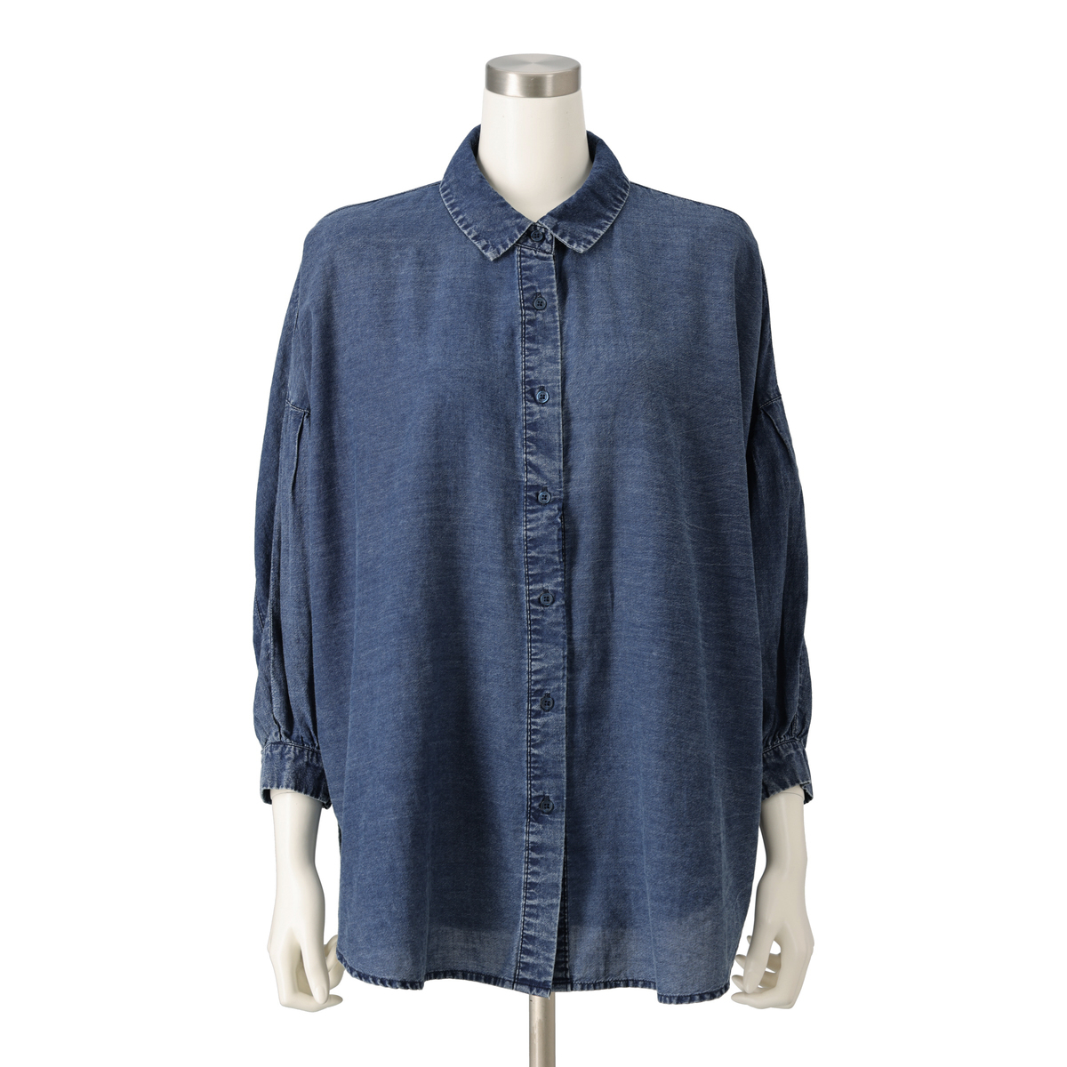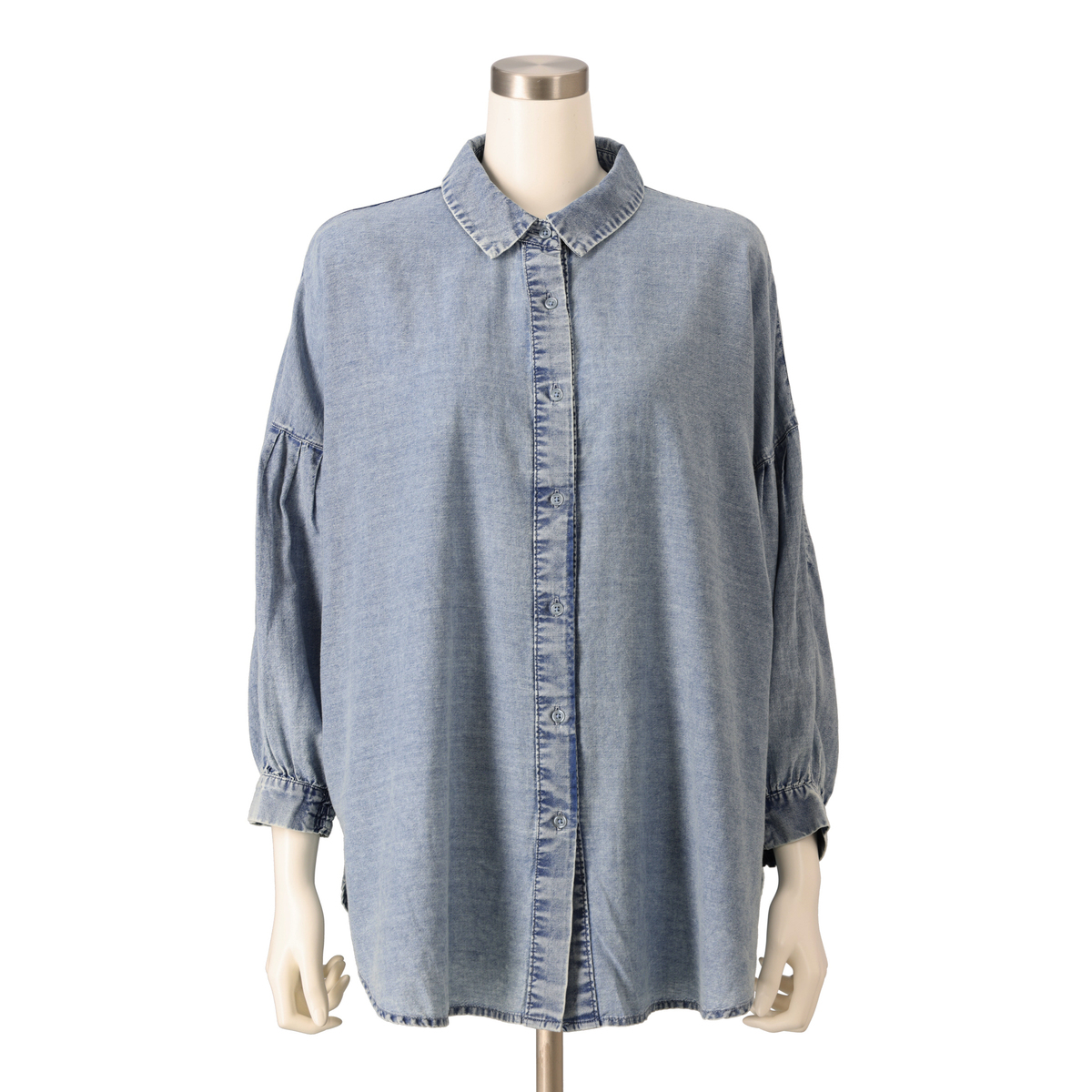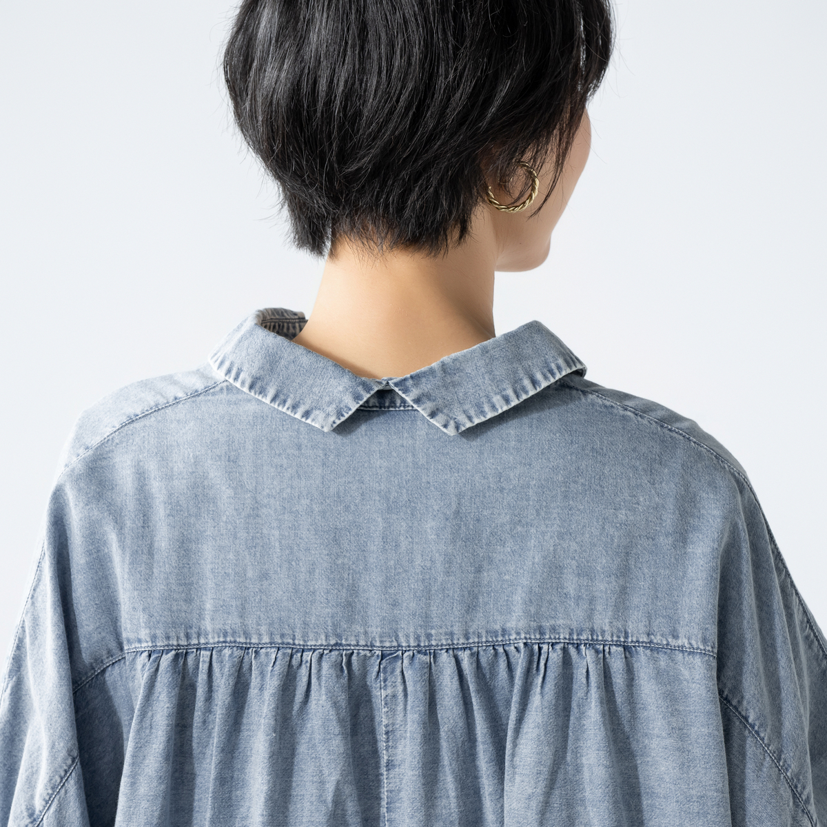 ケミカル加工を施したソフトデニム素材のシャツ。素材をたっぷり使ったドルマンシルエットで、全体にゆとりのあるサイズ感に仕上げました。羽織としても使いやすく、コーディネートの幅が広がります