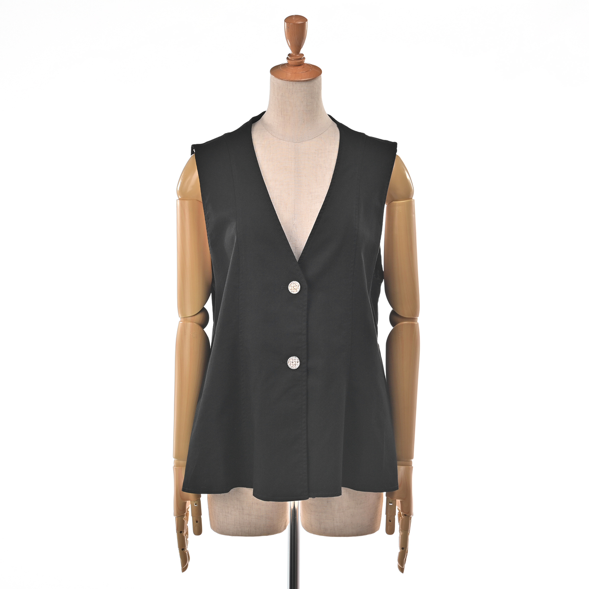 バランスを考えたプリンセスラインが身体のラインを拾いすぎず、すっきりとした立体的なシルエットに。裾に向かって優雅に広がるフレアデザインが、気になる腰周りをカバー。深めのVラインがお顔周りをすっきりと見せ、ブラウスやカットソーとの組合せもバランスよくまとまります