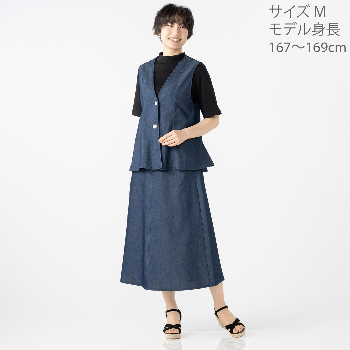 [商品寸法(ヌード)cm] サイズ バスト 着丈 S : 90.5(72〜80) 63 M : 96.5(79〜87) 63 L : 102.5(86〜94) 63 LL : 108.5(93〜101) 65 3L : 114.5(100〜108) 65 サイズ 肩幅 S : 37 M : 38 L : 39 LL : 40 3L : 41 [素材] ネイビー、ブルー、グレー: 綿 60% ポリエステル 39% ポリウレタン1% ブラック、ベージュ: 綿 60% ポリエステル 35% ポリウレタン5% [仕様] ボタン・ホック:有 ファスナー:無 ポケット:有(脇) スリット:無 [お手入れ] 洗濯機洗い可 [注意事項] ※商品寸法の誤差は多少発生します。ご了承下さい ※無蛍光洗剤使用 ※あて布使用 ※装飾部分アイロン禁止 ※洗濯ネット使用 ※着用時の摩擦(特に雨や汗により湿った状態での摩擦)で他の衣料やバッグ、椅子やソファー、車のシート等に色が移る場合がありますのでご注意下さい。万が一移染した場合は、移染した衣類等の早めのお手入れをお願いします。また、濃色は水洗いで色落ちや色移りの恐れがありますので淡色との洗濯は避け、洗濯後は速やかに干して下さい。長時間のつけ置き洗いや濡れたままの重ね置きはお避け下さい ※この商品は長時間日光に当たり続けると色あせの恐れがありますご注意下さい。洗濯後は必ず陰干しして下さい ※生地の特性上、過度の引っ張りを受けると縫い目が開いたり、破れたりすることがありますのでお取り扱いにはご注意下さい ※淡色のものとの組み合わせは極力お避け下さい。デニムの色が移る可能性があります ※着脱の際は装飾部分への引っ掛けにご注意下さい ※お洗濯は、他のものとは避けて単独洗いして下さい ※洗濯の際は裏返して洗濯して下さい 【ミャンマー製】