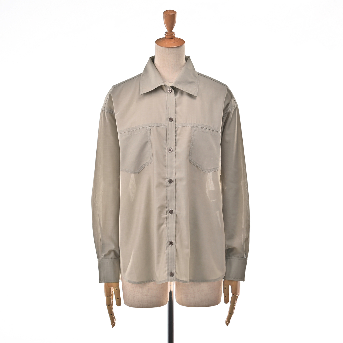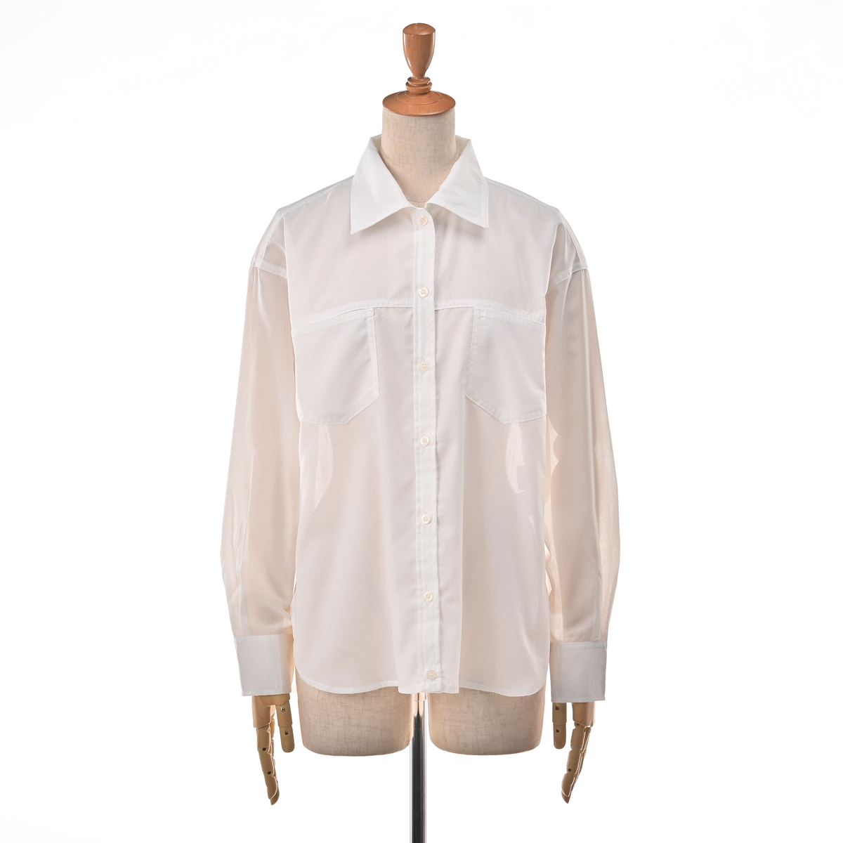 胸ポケット付きのシャツジャケットのようなデザイン。後ろ身頃の切り替えが縦のラインを強調し、すっきりとした印象で着こなせます