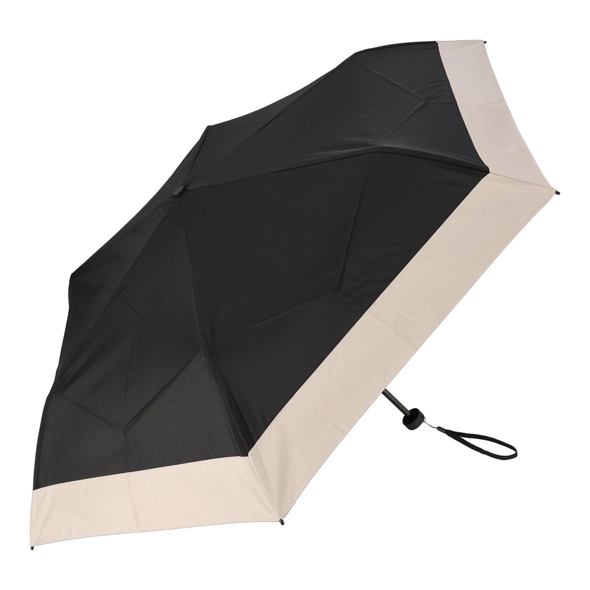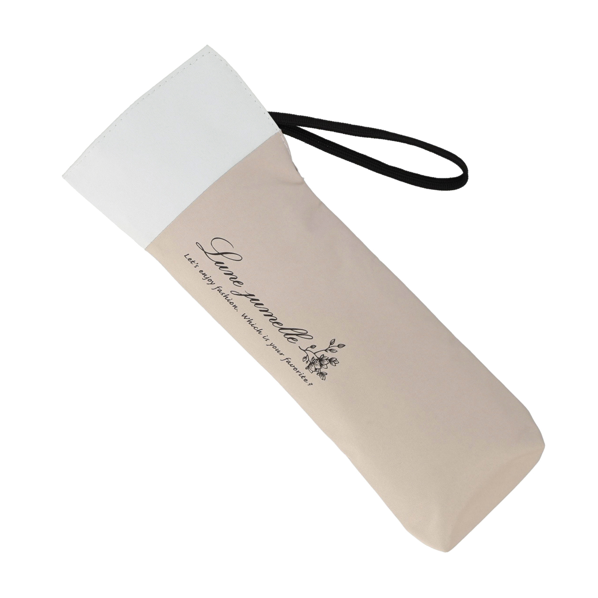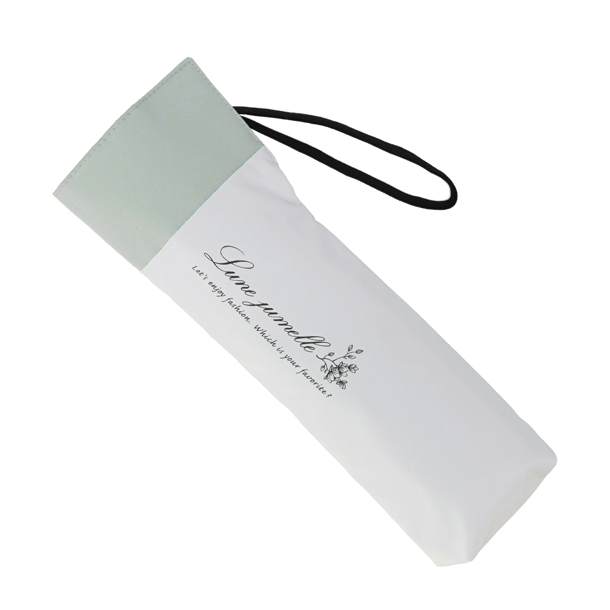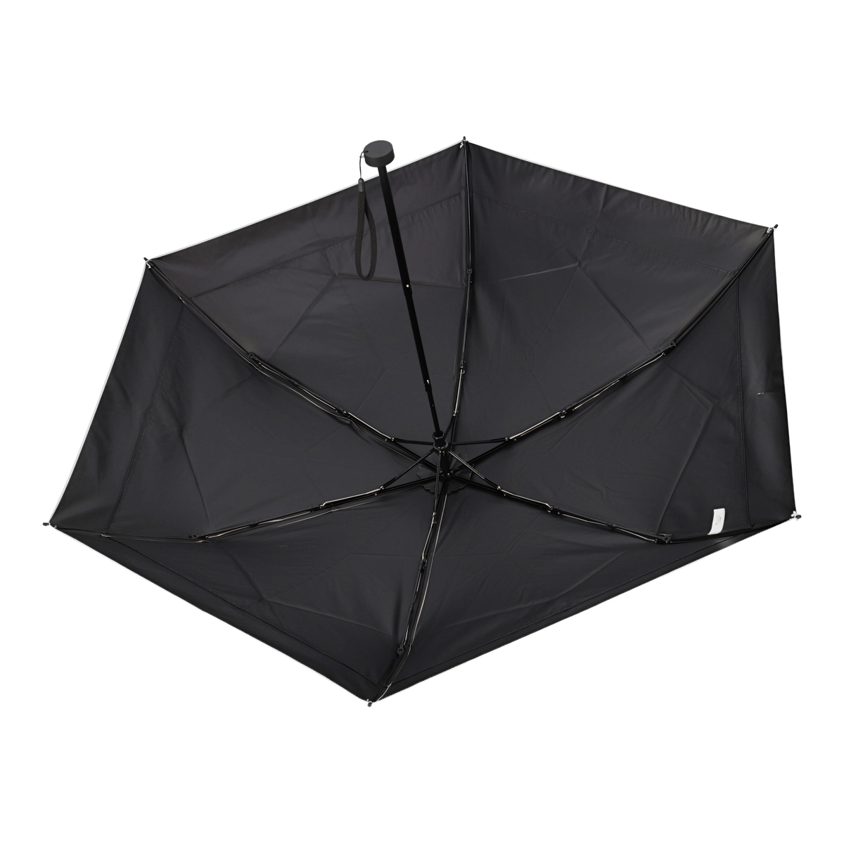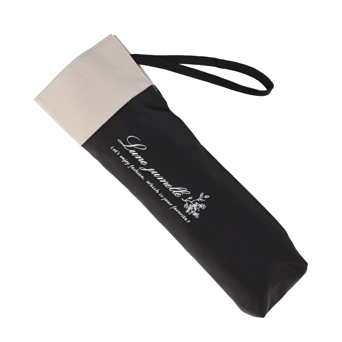 骨が全て黒色で高級感があるデザイン。濡れたまま入れられる傘袋の入口にはマグネットを内蔵しています。外側の骨をポキポキ折らずにたためる三つ折りで、本体重量約180gの軽量タイプ。風を受けて傘がさかさまになったとしても、閉じた時に元通りになる耐風骨を使用しています