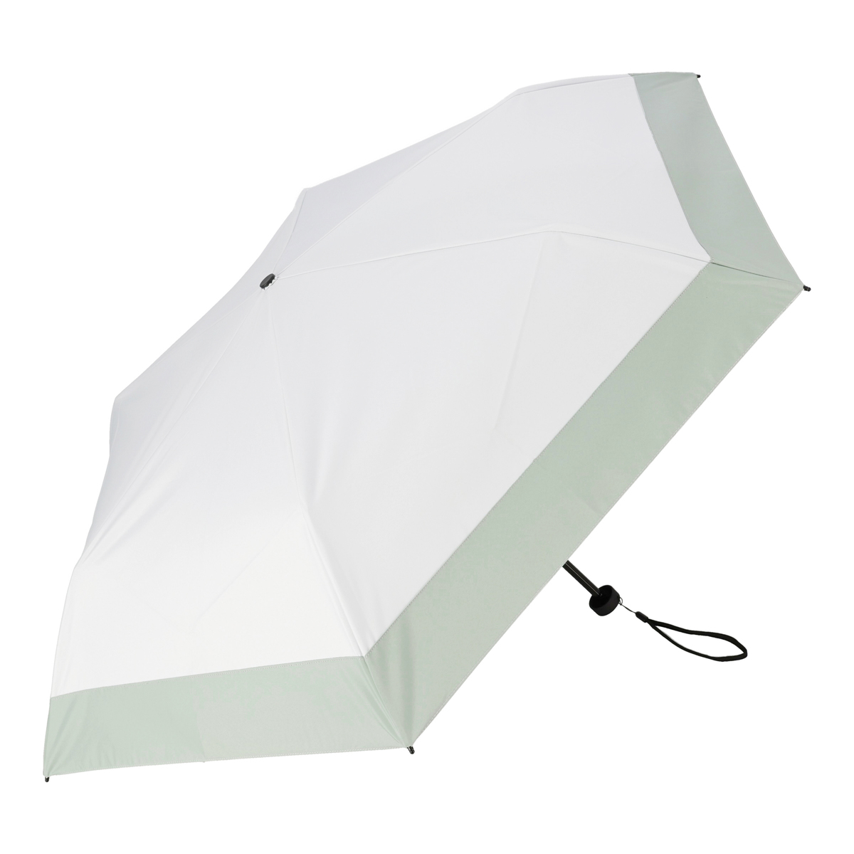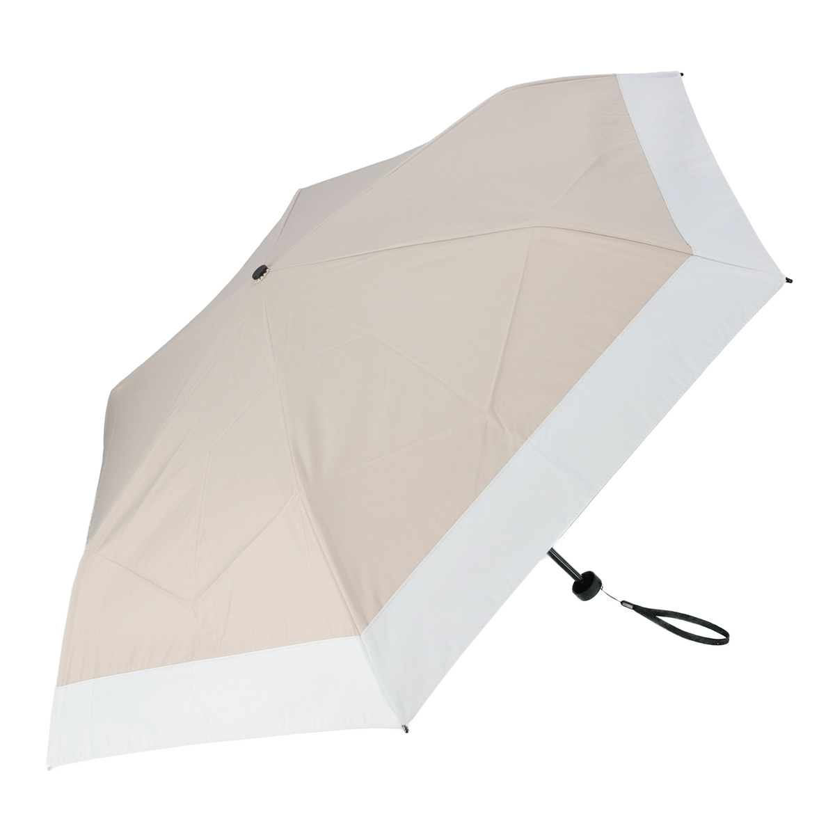 撥水性等級4級の撥水加工をした生地が雨粒をさっとはじく晴雨兼用傘。内側にブラックコーティングをした、UV遮蔽率100%*の生地を使用。1級遮光傘で、遮光率100%**の生地を使用しています。近赤外線遮蔽率は99.9%以上です