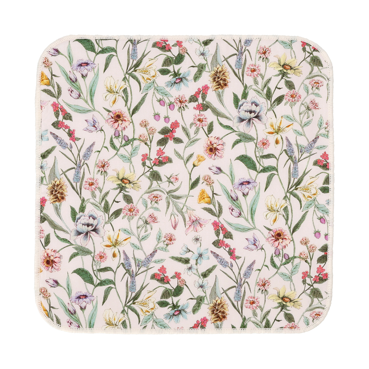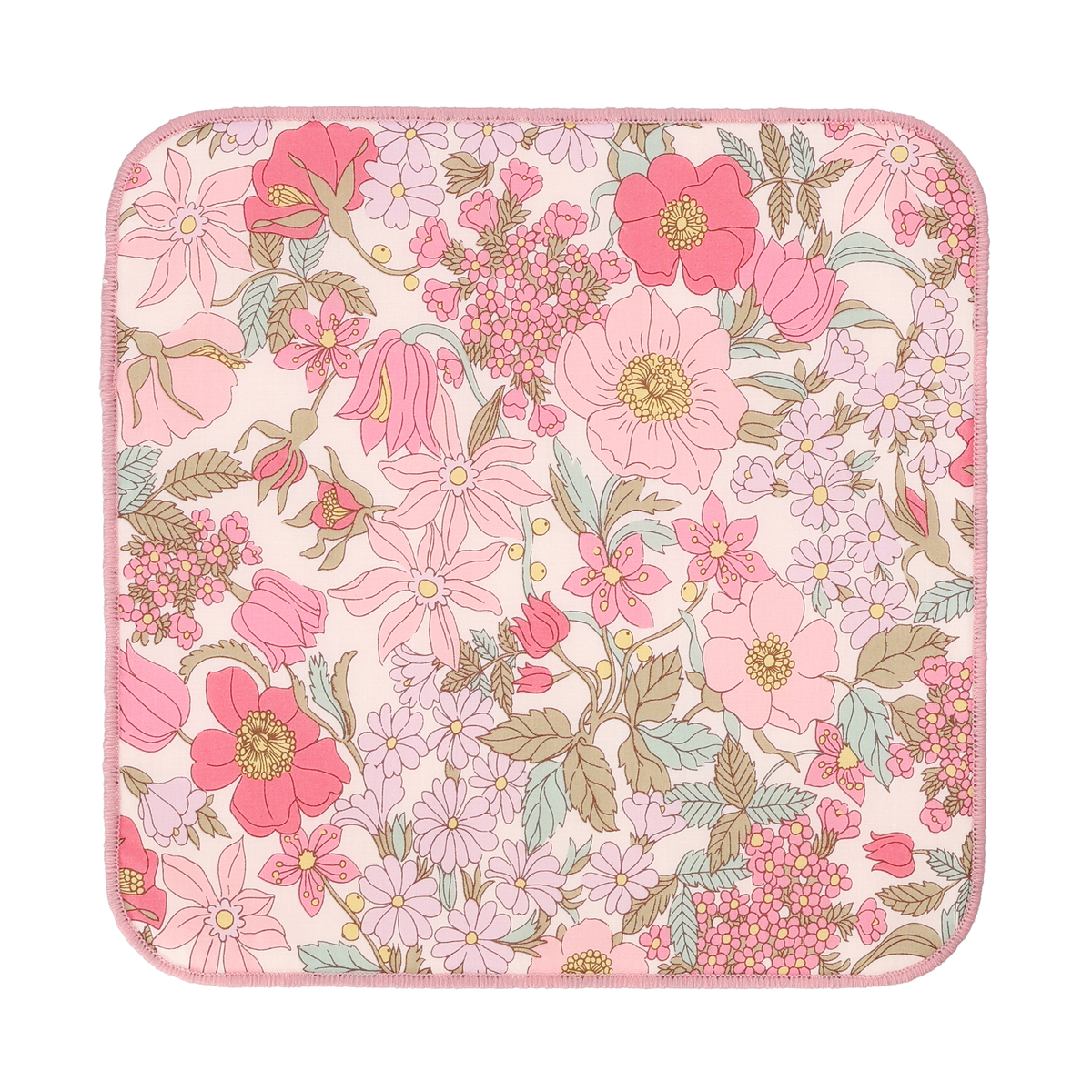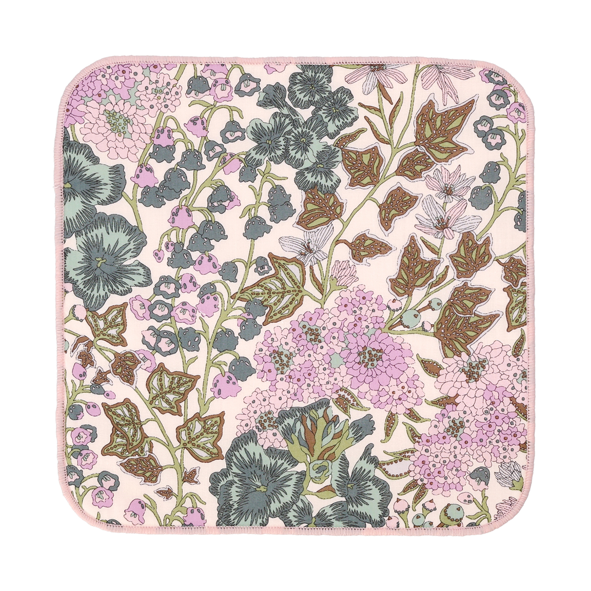 世界的人気のリバティプリントのハンカチ。表側がリバティタナローンファブリック、裏側がパイル生地で貼り合わせになっています。リバティプリントの良さとタオルの実用性の両方を楽しめます
