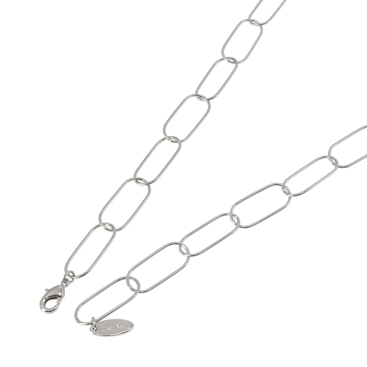 シルバーカラーのオーバルチェーンが全体を引き締め、モダンな印象に。軽やかな着け心地で、単品使いはもちろん、重ね付けもおすすめです