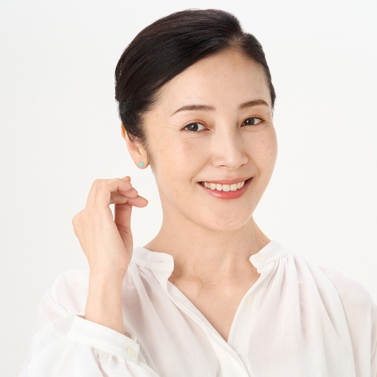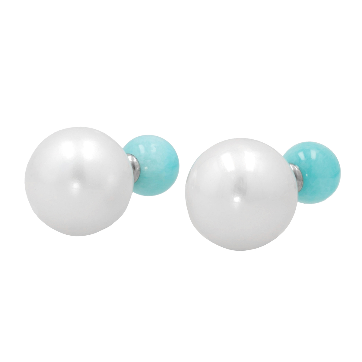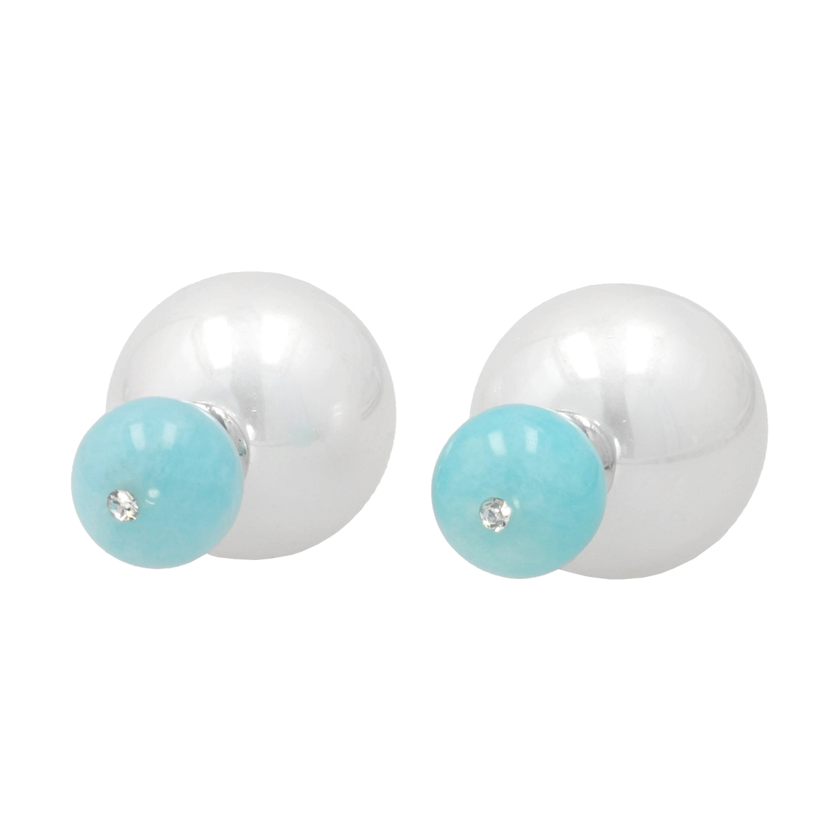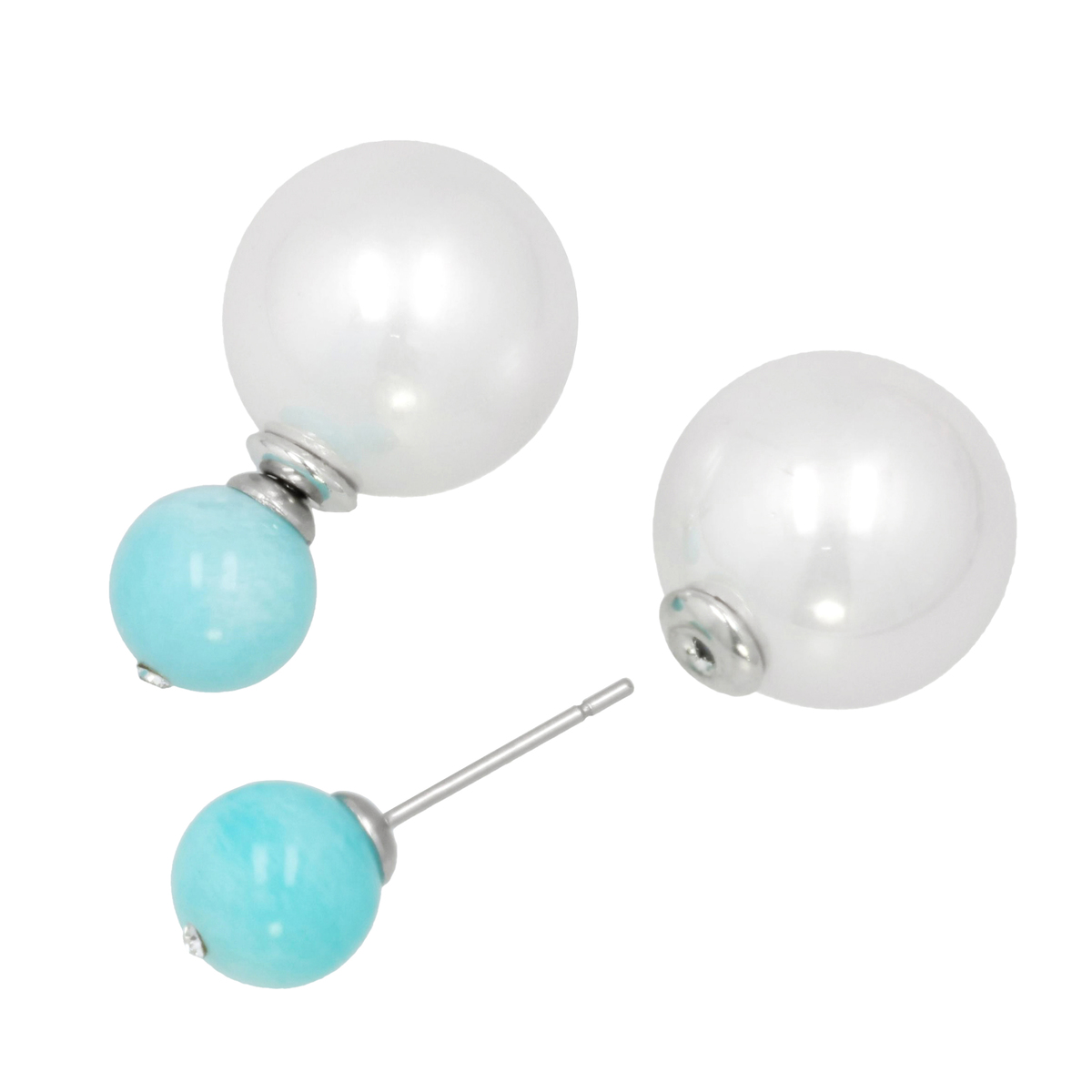 艶やかな天然石と、後ろ姿に柔らかな光りを放つ樹脂パールを組合せたダブルフェイスピアスです。色と質感のコントラストが、耳元に個性と自然の美しさを添えます