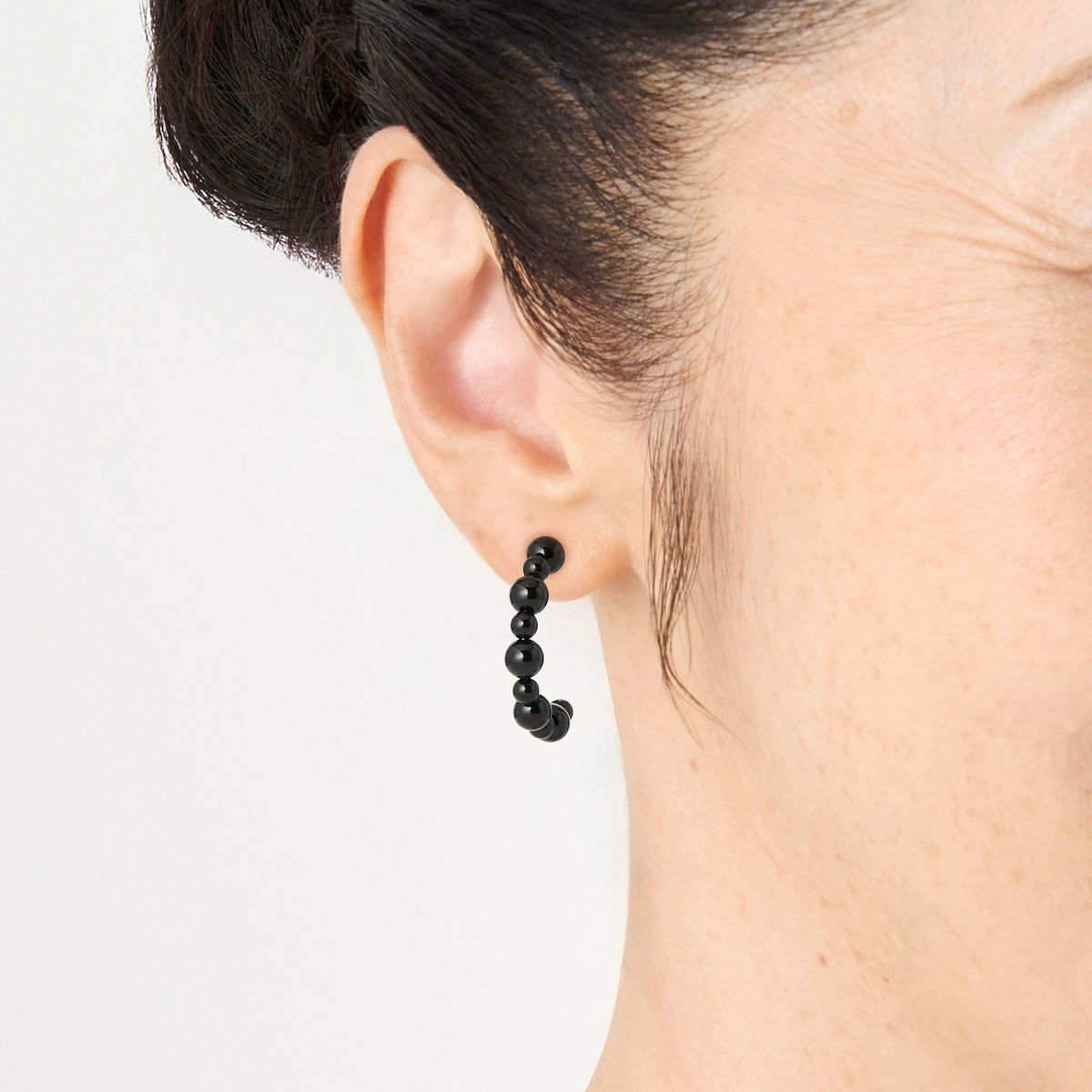 天然石の魅力が連なるイヤリングまたはピアス。フープ状のクレオール型に、一粒ずつ丁寧に天然石を配置し、素材の個性が引き立つ構成に仕上げました。ほどよい存在感で耳元に自然な彩りが広がり、軽やかに馴染みます