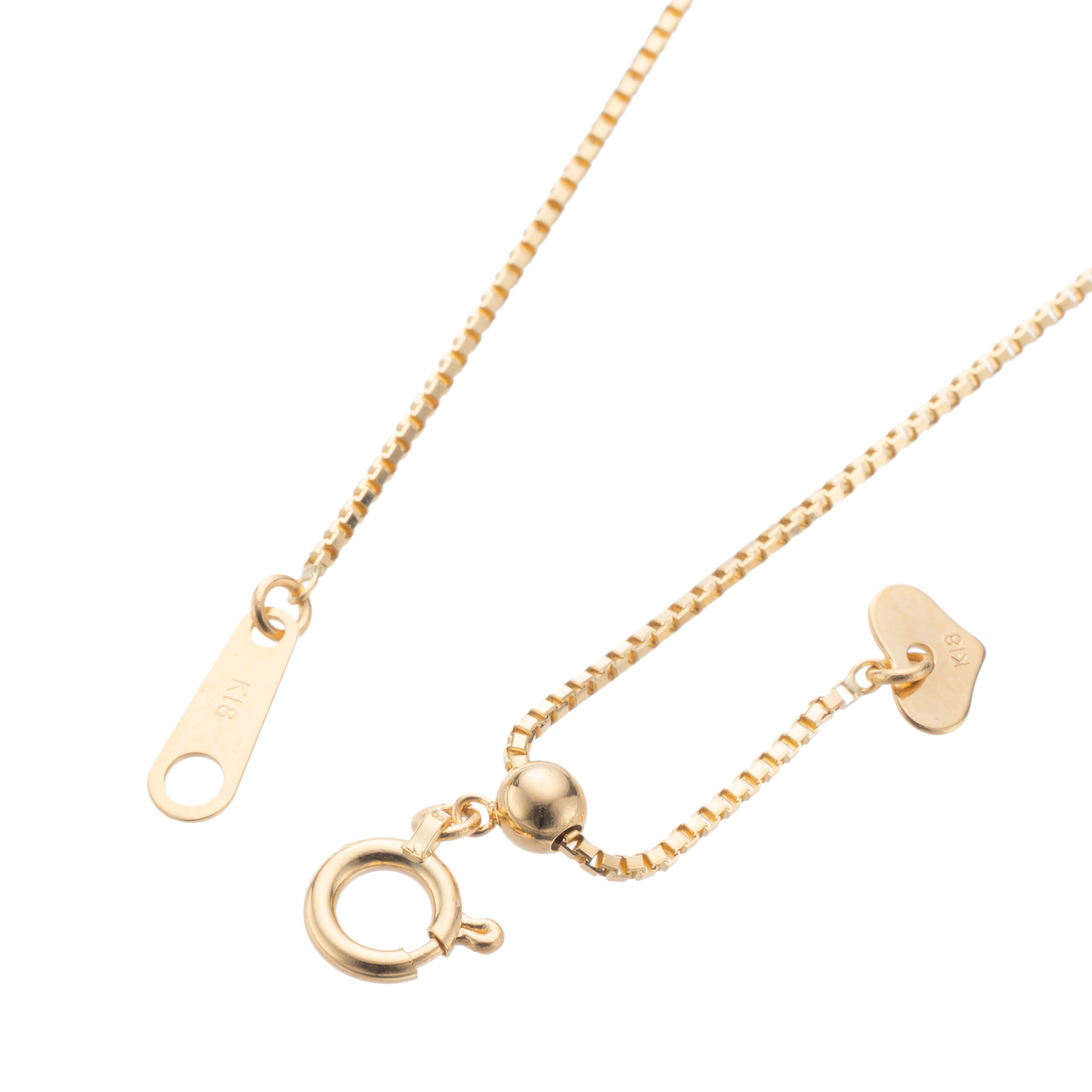 スライド式アジャスター付きで、装いに合わせて長さ調節が可能です。チェーン単体でも、ペンダントヘッドに通してもお楽しみいただけます