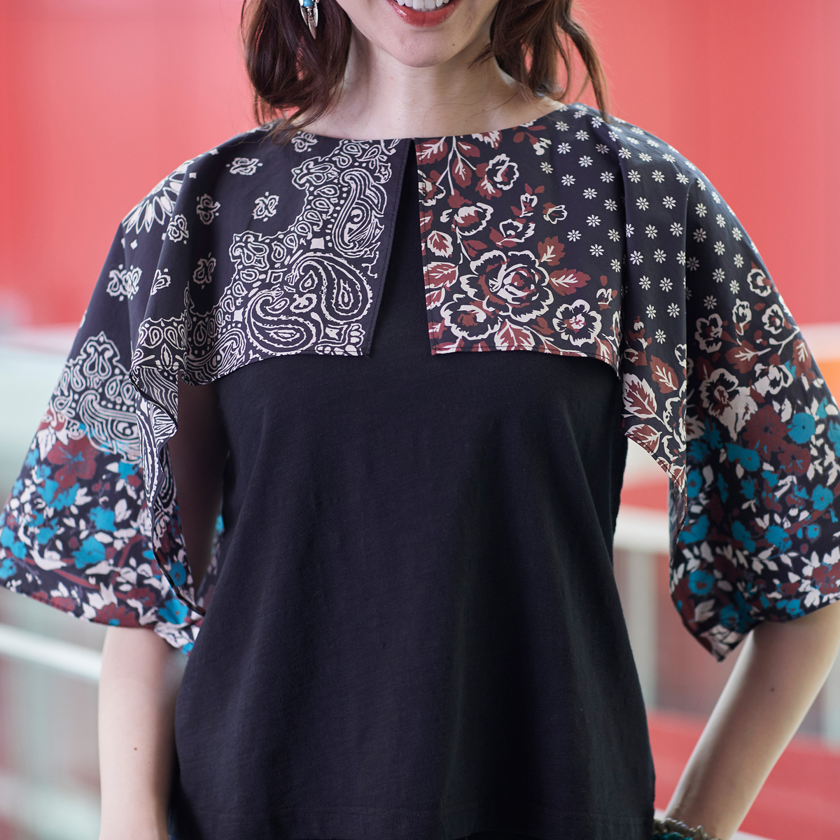 No. 753319 Wornique バンダナリワーク風ノースリブラウス