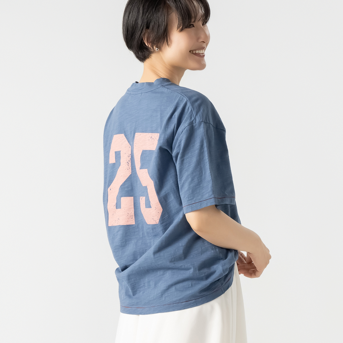 スポーティーなリブ(ゴム部分)でなく、胴体と同じ生地で首元を仕上げることで、ブラウスのような上品な印象に。パールなどのアクセサリーも映える、大人のための洗練された設計です