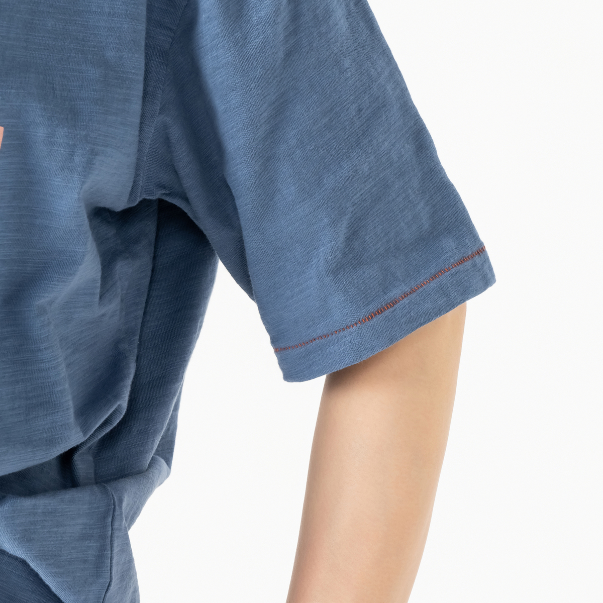 糸の太さが不均一なスラブ糸で編み上げた生地で、表面に凹凸があるのが特徴。肌との間に隙間を作るため、背中やウエスト周りのお肉の段差を拾いにくく、ふんわりと隠してくれます