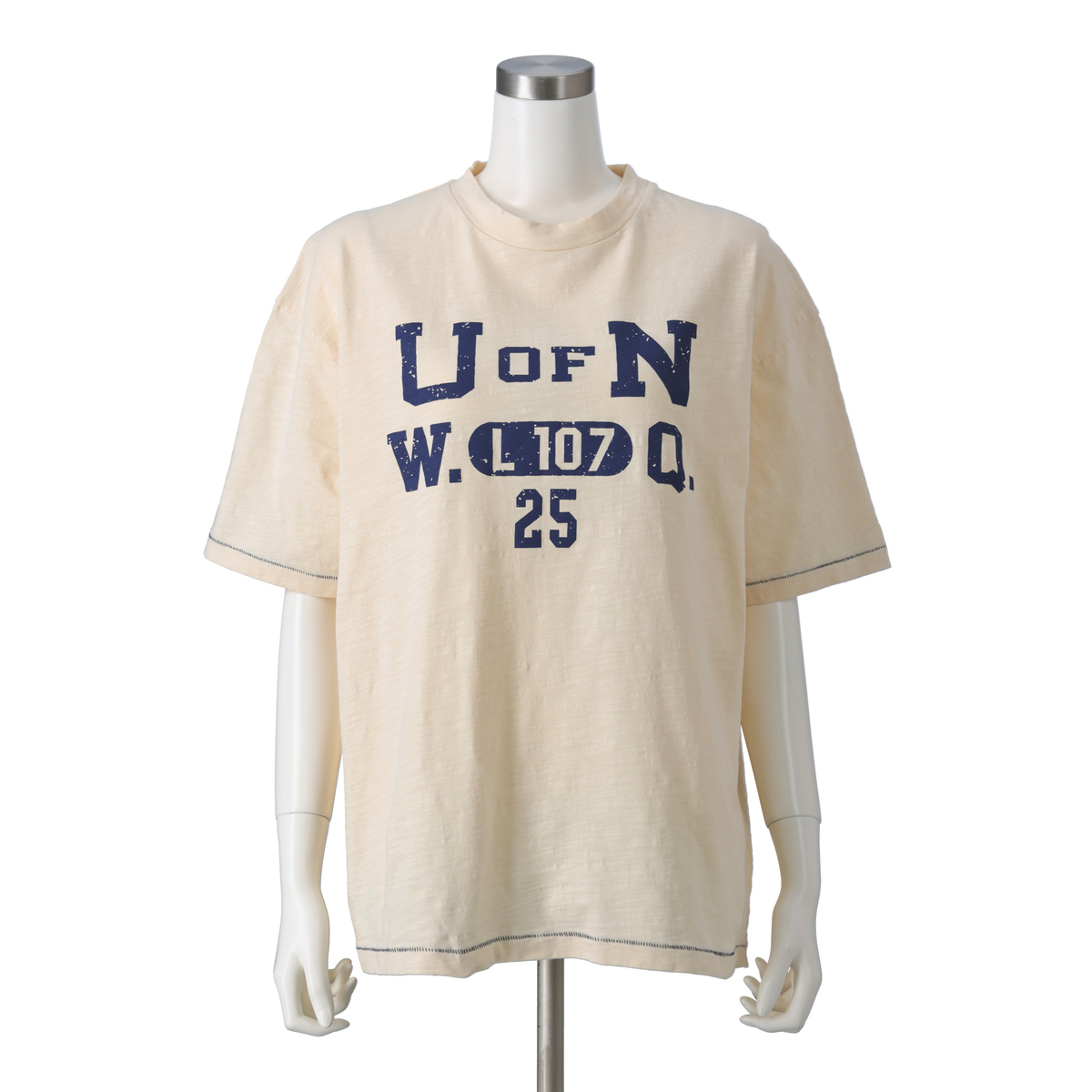半ラバークラックプリントで、昔のスポーツTシャツのような雰囲気を表現。かすれたカレッジロゴを採用し、届いたその日からこなれ感を楽しめます。製品洗い加工を施した上で、あえてアイロンをしっかりかけずにふんわり仕上げています