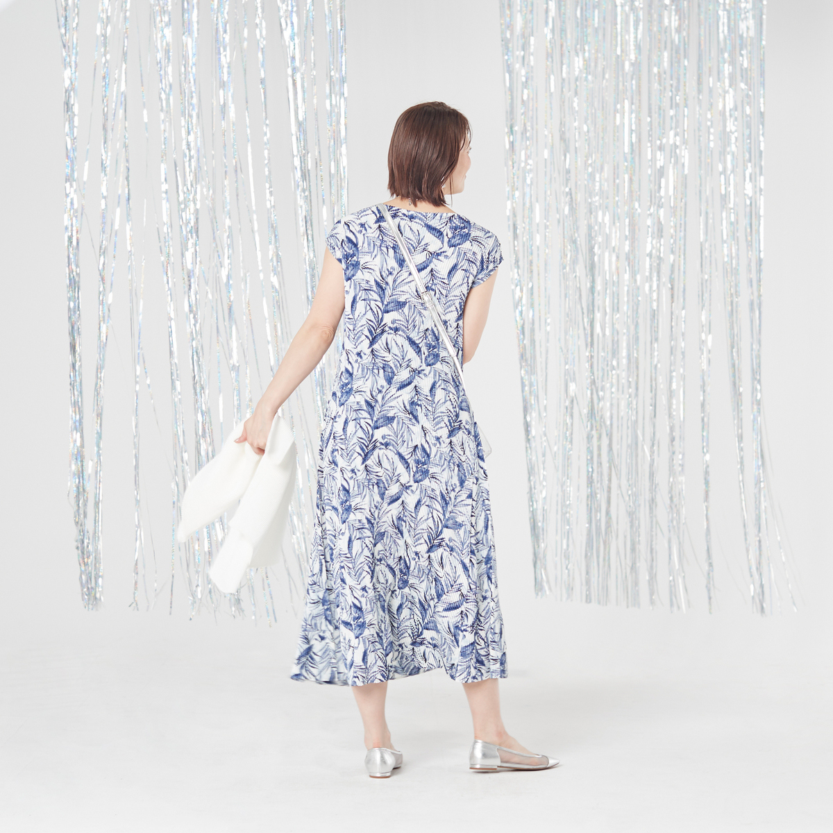 緩やかなAラインを軸に、ストンと着るだけでリラクシーに整うデザインです。鎖骨が少し見える襟ぐりや長めのフレンチスリーブ、ウエストを軽く絞ったテントラインが立体感をつくり、ベルトでのアレンジも可能。しわになりにくく、カジュアルからエレガントなフォーマルスタイル、旅用にまで活躍します